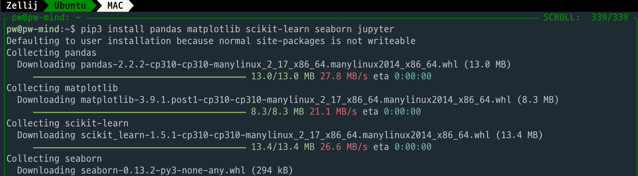 그리고 처음 Python을 설정한다고 보고 여타 모듈들도 설치를 합니다. [제가 자주 쓰는 것들이라, 꼭 지킬필요는 없어요] 중요한건 Jupyter는 꼭 설치를 해야합니다.