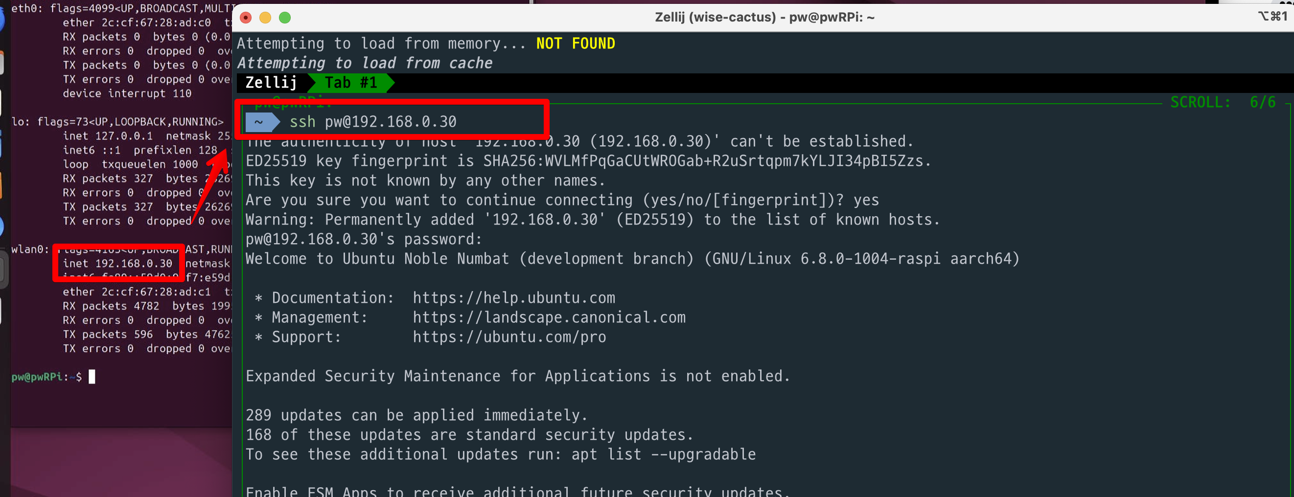 이제 ifconfig 명령으로 내 라즈베리파이5 보드의 ip를 알아내고는 나의 PC - 저는 맥을 쓰고 있어서 맥에서 터미널을 열어서