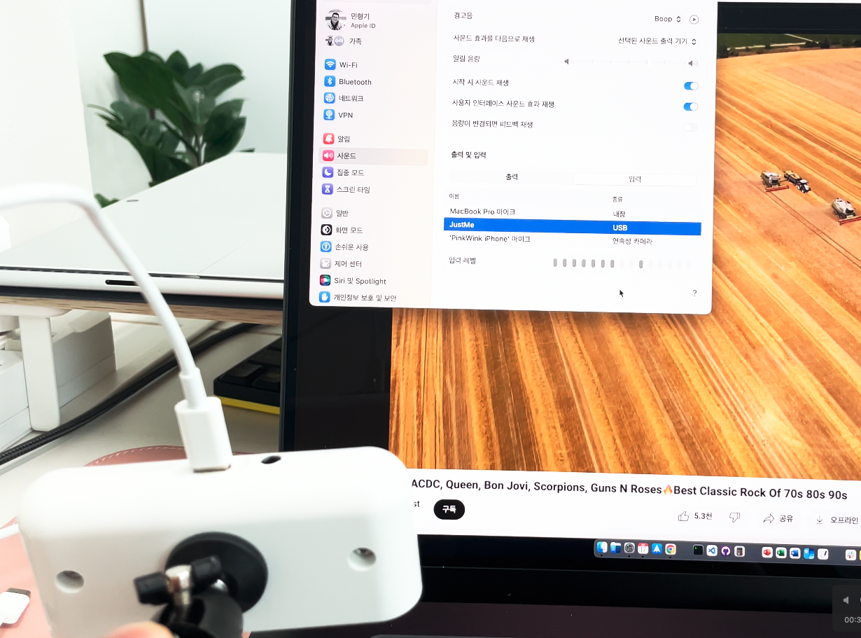 이렇게 스피커를 향하게 마이크를 잡으면 지금 제 모니터에 잡힌 마이크에 입력된 소리의 크기가 보이죠?