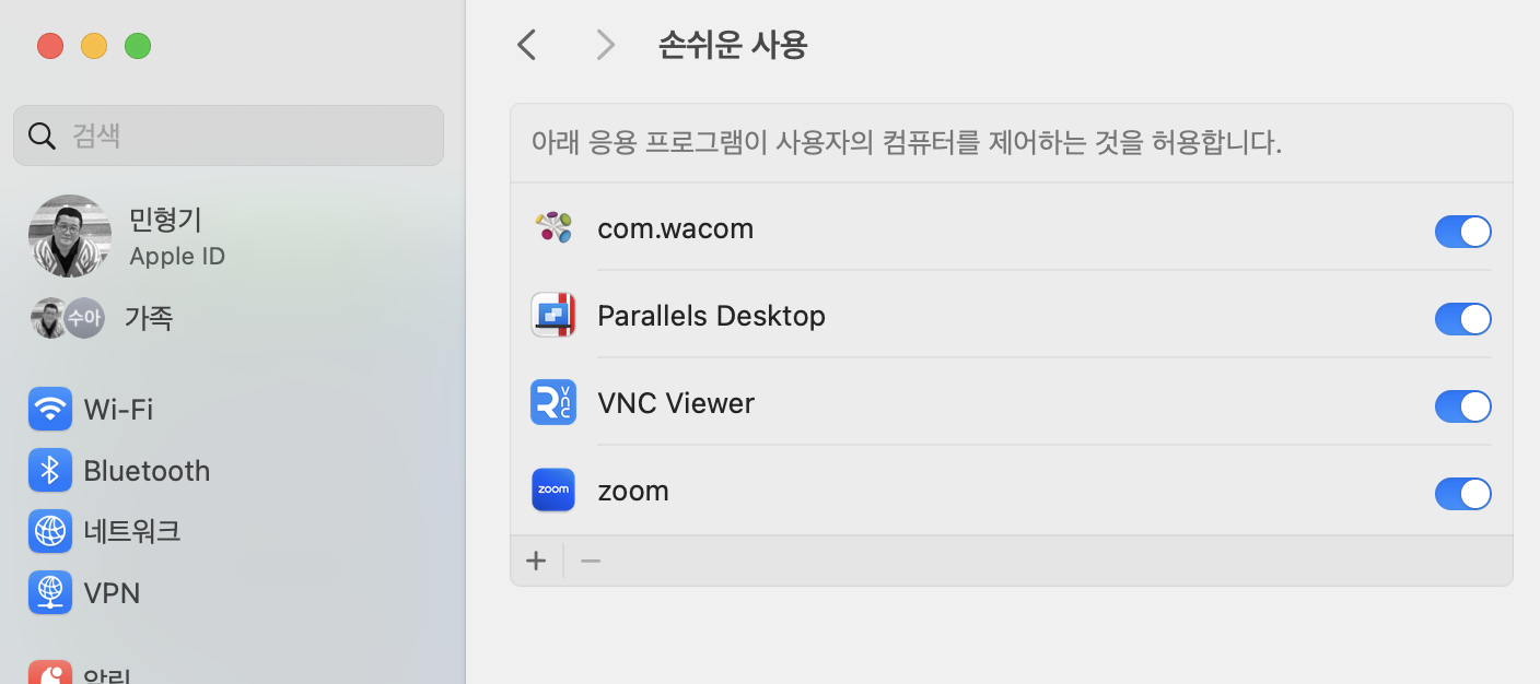 아 맥 유저들은 손쉬운 사용에서 VNC Viewer의 사용자 컴퓨터 제어를 허용해야 합니다.