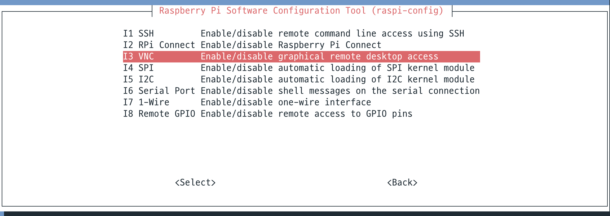 그런경우 sudo raspi-config를 터미널에서 실행해서 나타나는 화면에서 3번 interface options에 들어가서,