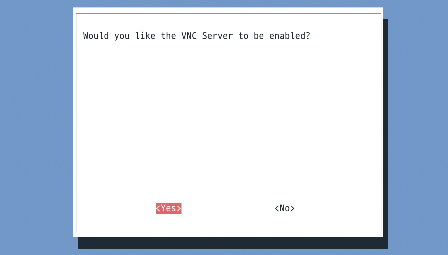 그런 후 VNC 서버를 활성화하겠느냐는 질문에 YES를 선택하시면 됩니다.