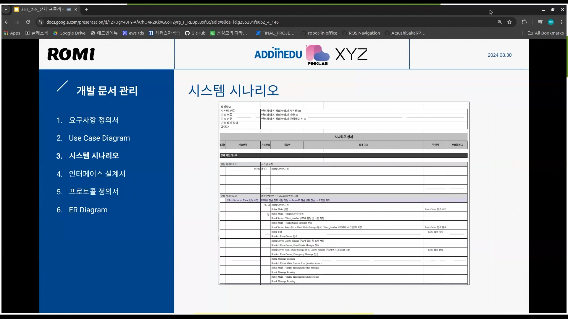 그리고, 시스템 시나리오, 인터페이서, 프로토콜 등도 모두 문서로 정리를 깔끔하게 해 두었습니다.