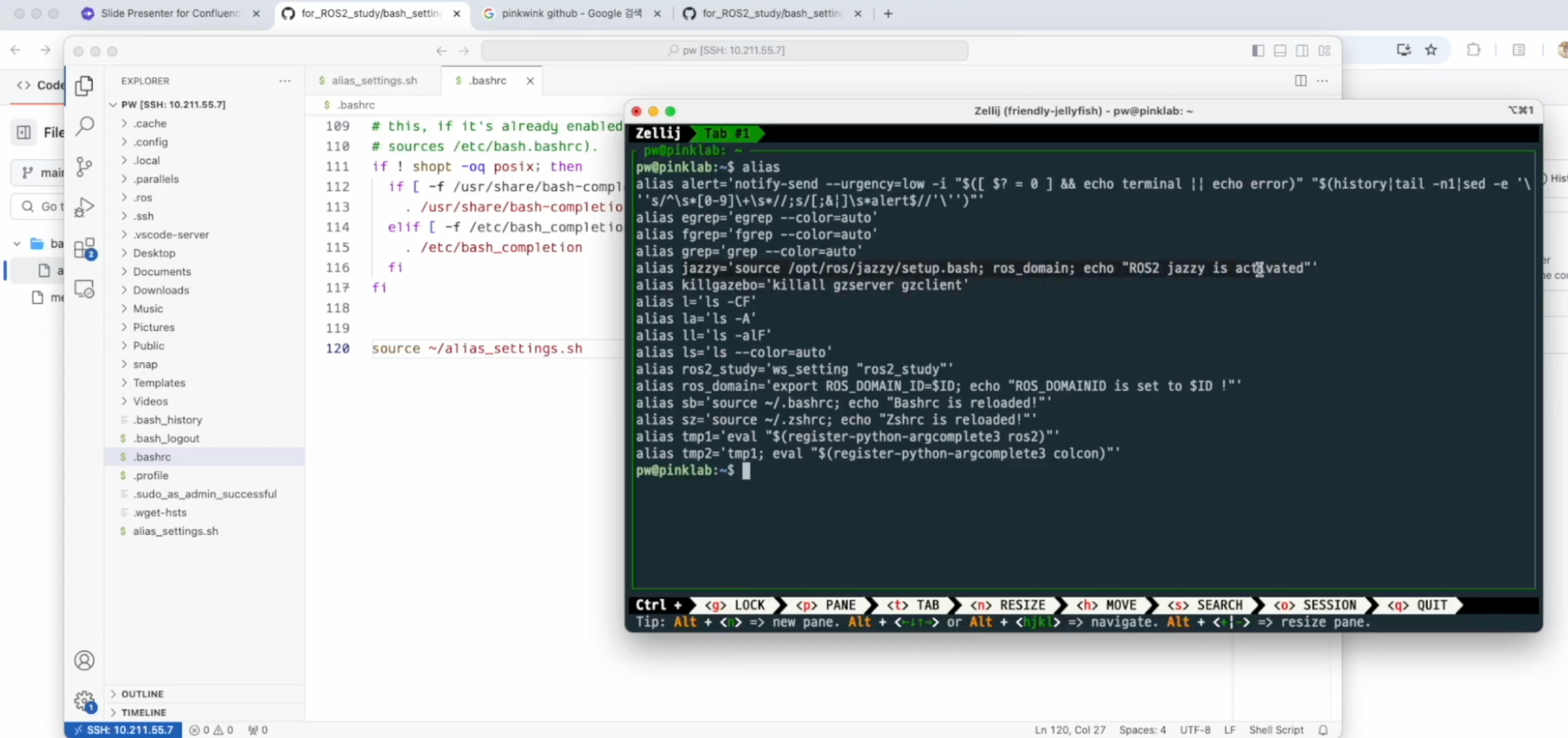 alias 의 내용이 이해가 잘 안되신다면, 꼭 R2R ROS2 PinkLab 여기로 가셔요. 여기에 가셔서 bashrc 설정, bashrc alias 설정, ROS_DOMAIN_ID 설정 까지 보고 오시면 이해가 잘 될거에요.