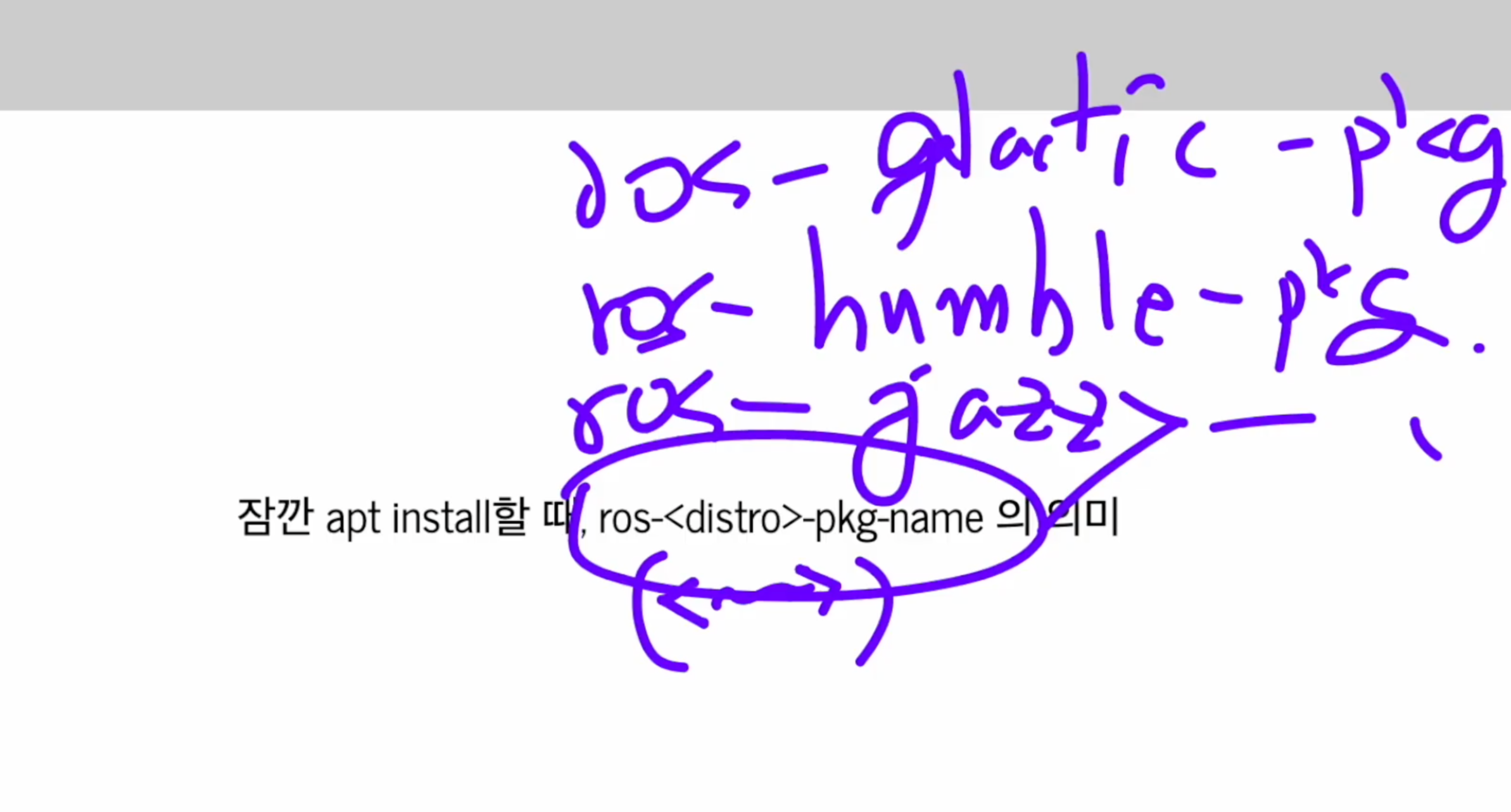 sudo apt install ros- 한 다음에 < distro > 해두고 샤랄랄라 적는 경우가 많아요,