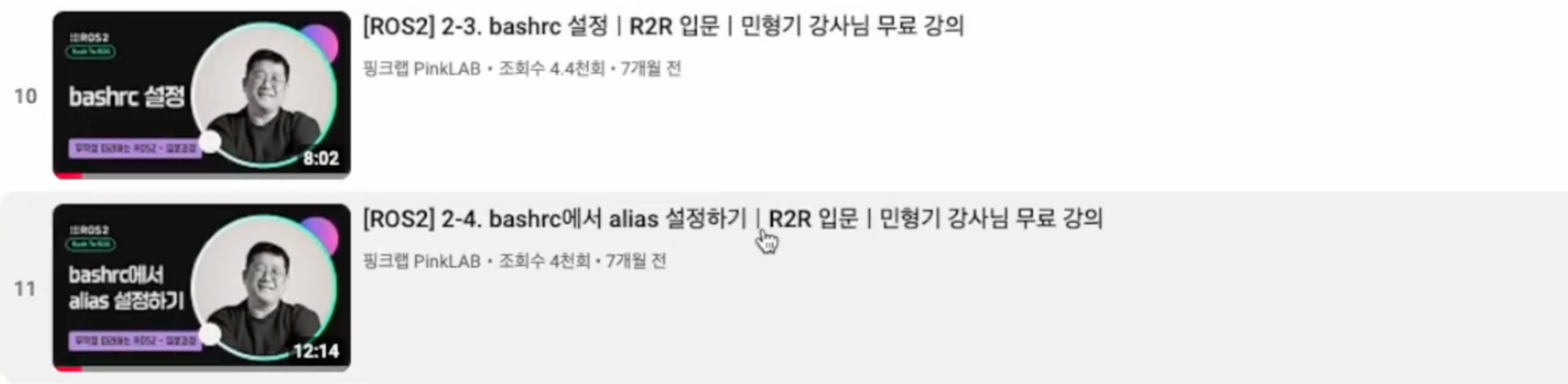 (이 내용 잘 모르면 핑크랩 채널에 가셔서 2-4번 ROS2 bashrc 에서 alias 설정하기 찾아봐요!)