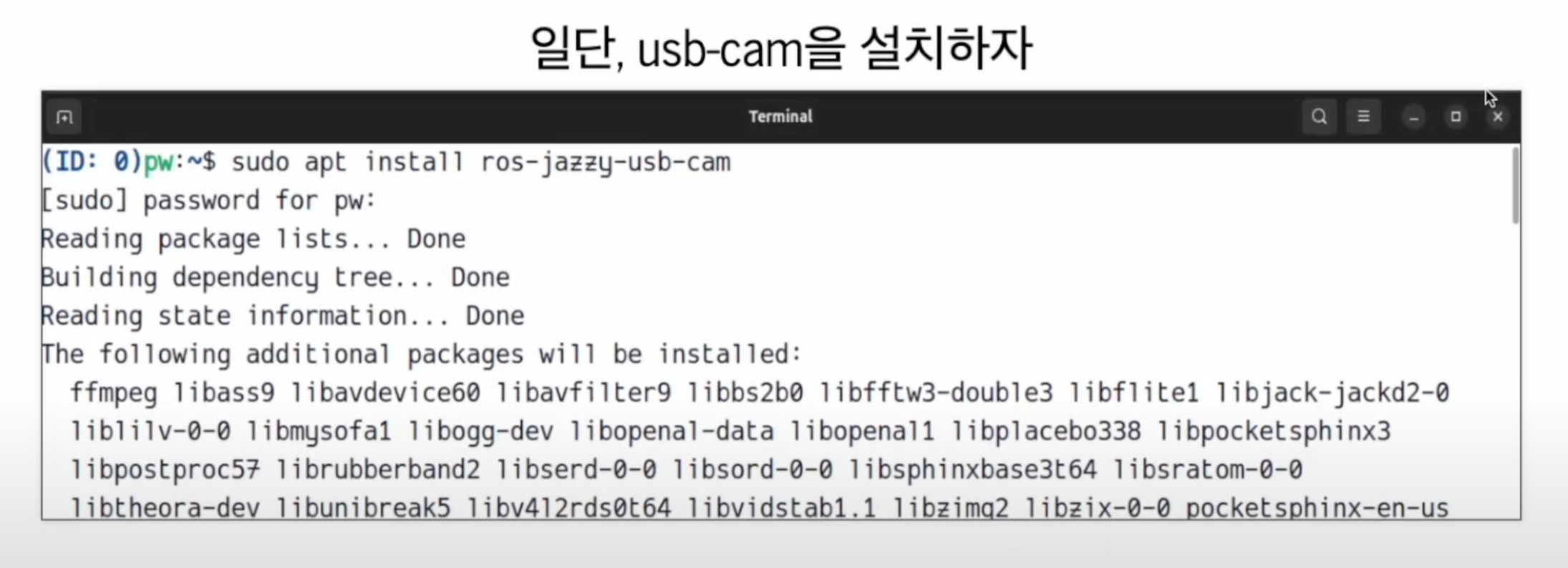이렇게 해서 ros-jazzy-usb-cam 설치를 sudo apt install 명령으로 했어요.