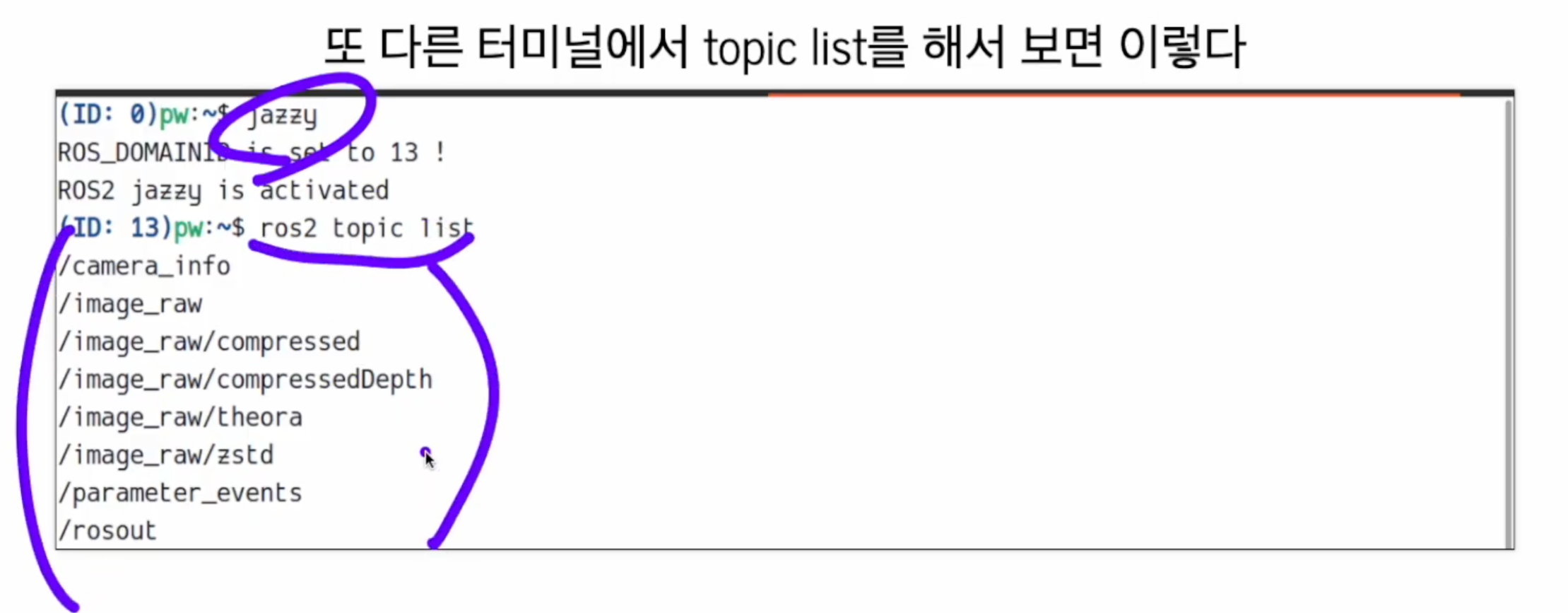 사실 jazzy 부르고 ros topic list 에서 보면 이만큼 떠요.