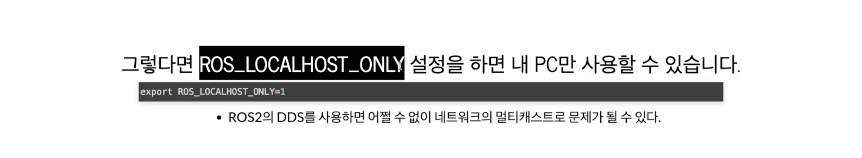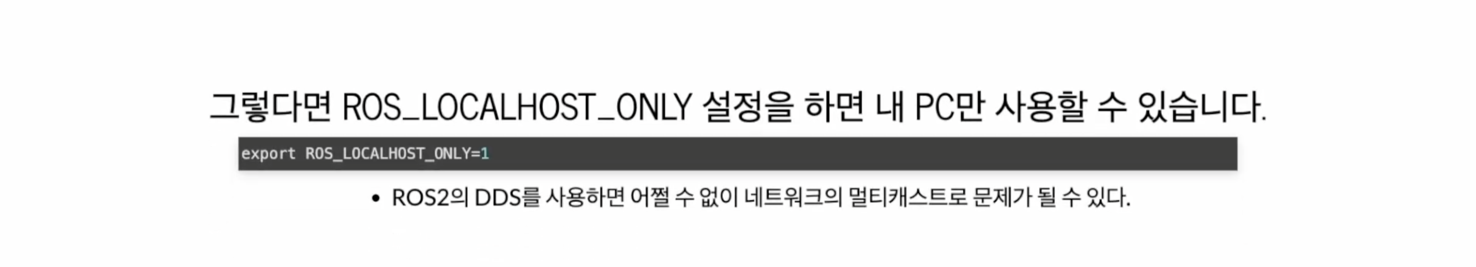 ROS_LOCAL_HOST_ONLY 를 건다는 것은 네트워크를 통해서 로스 토픽을 밖으로 보내지 않겠다는 거에요.