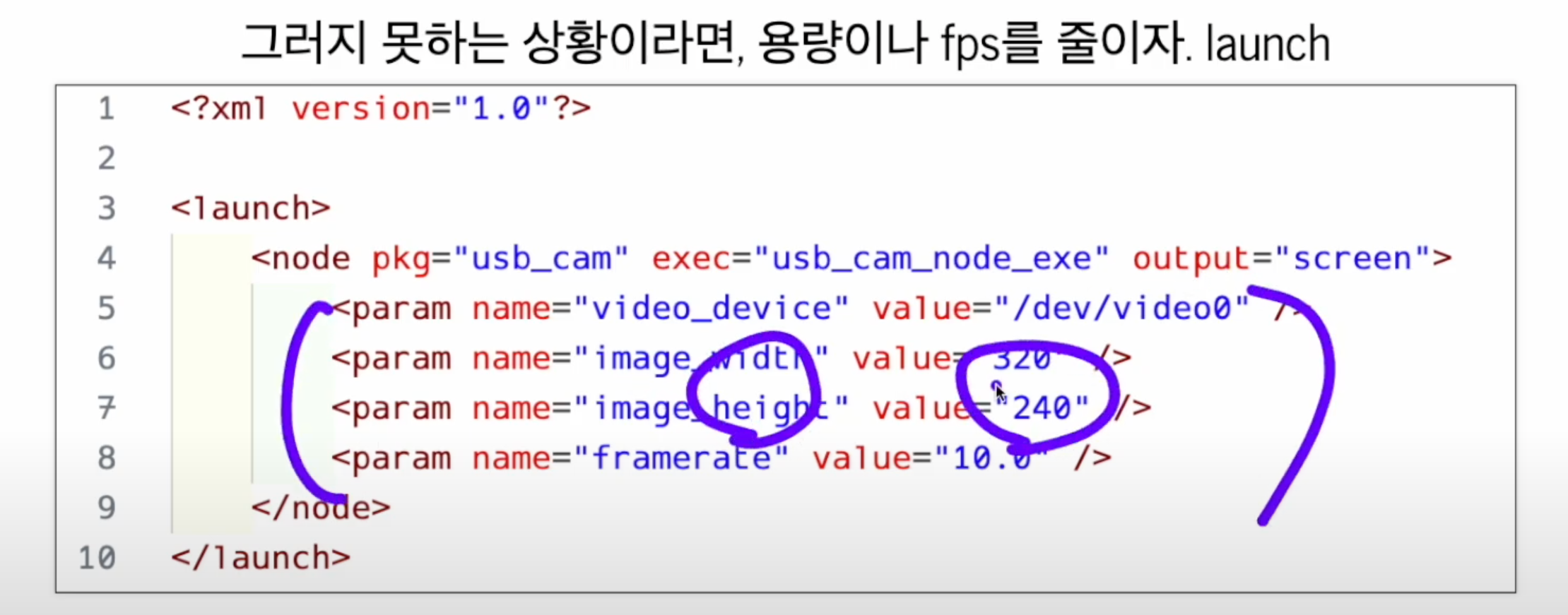 아까 launch 파일에서 우리가 파라미터를 잡아뒀잖아요. 여기에서 width나 height를 줄여요.