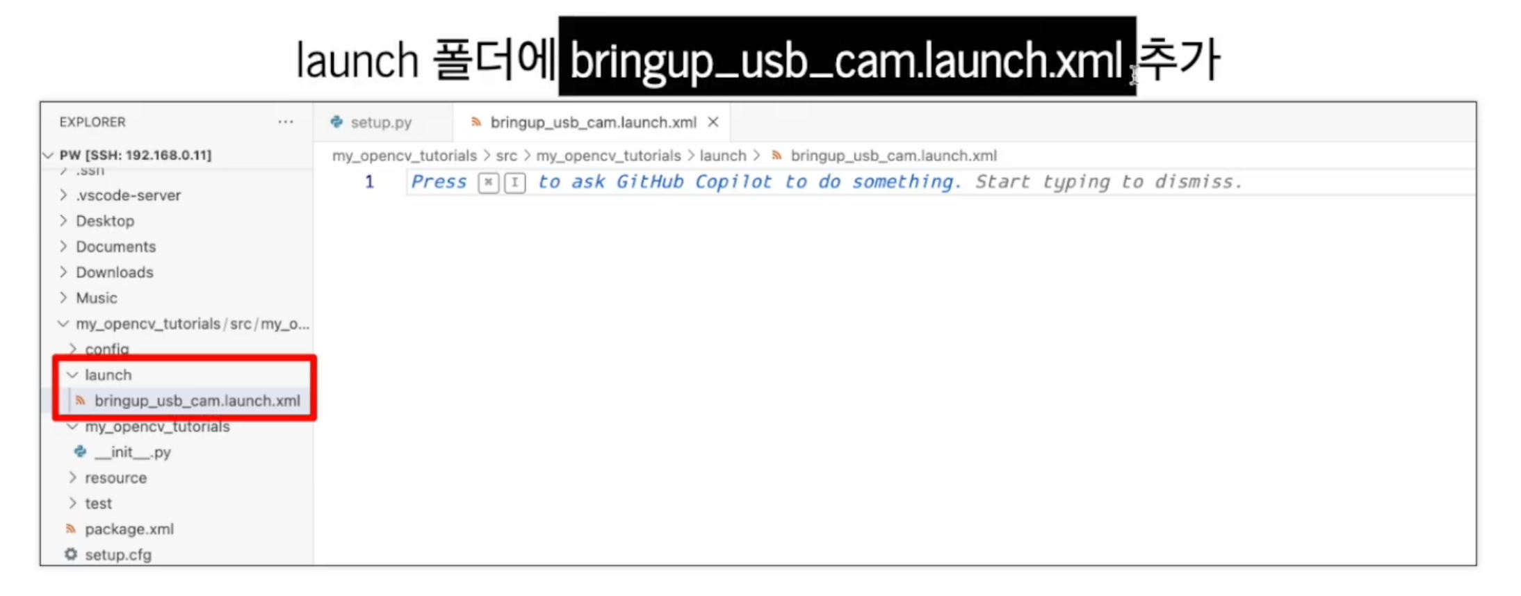 그리고 launch 폴더에 bringup_usb_cam.launch.xml 추가하도록 할게요.