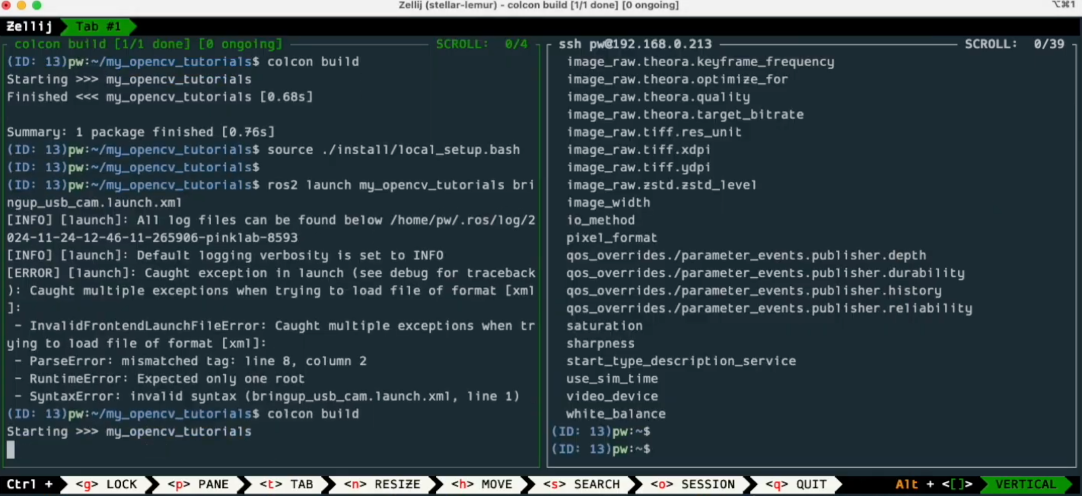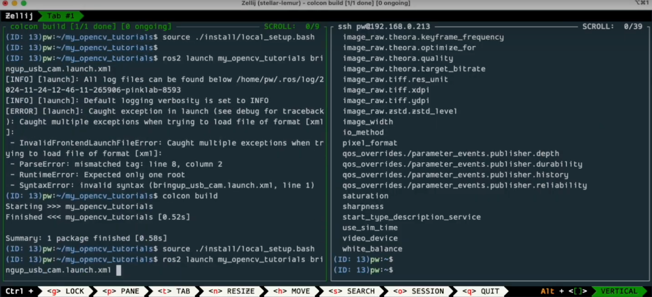 이제 이렇게 해 두고, 아까 했던 ros2 launch 명령어로 my_opencv_tutorials에 있는 bringup_usb_cam.launch.xml 파일을 부르는거죠.