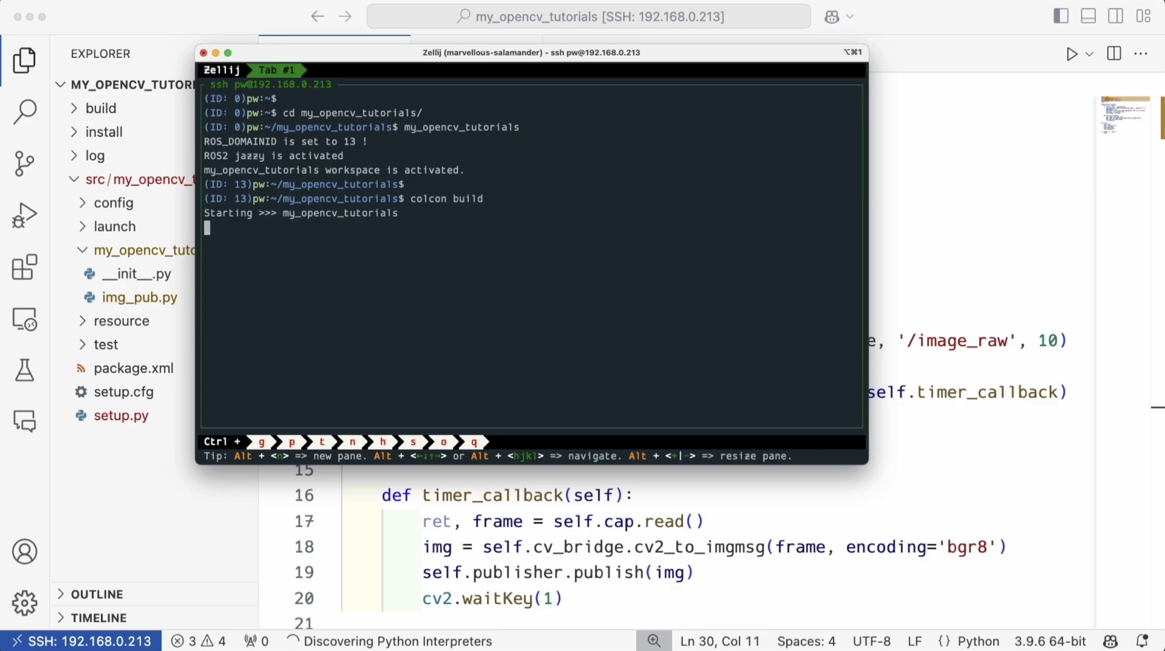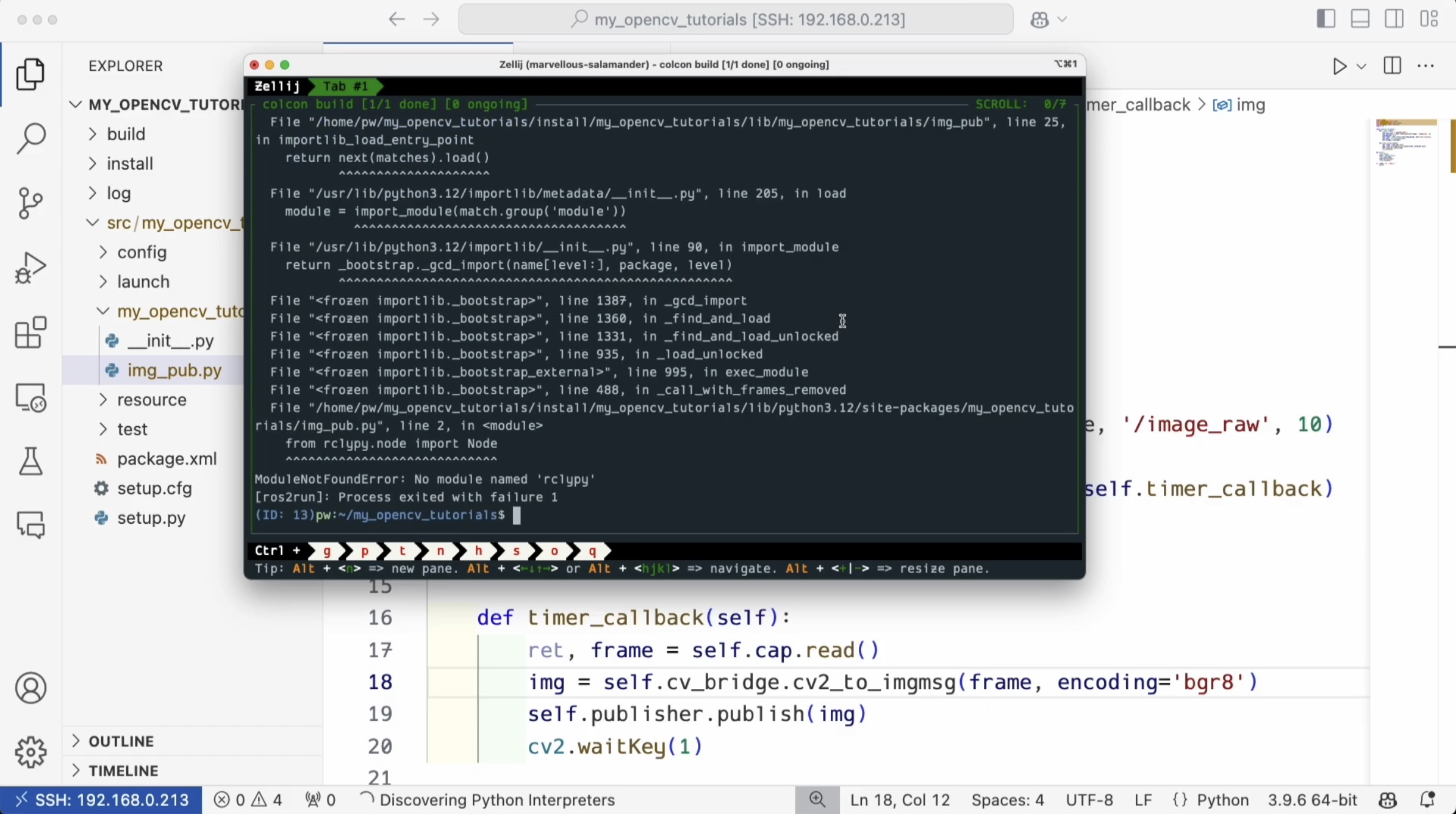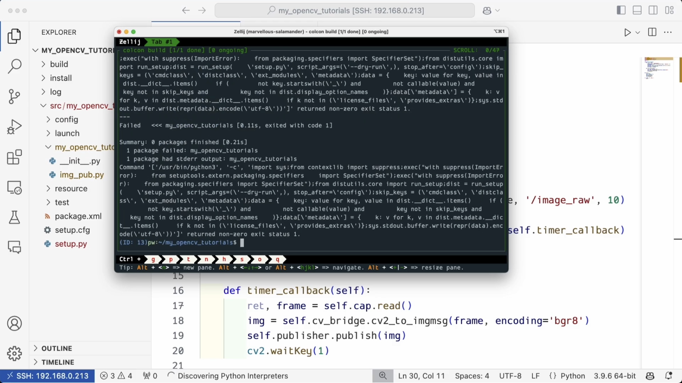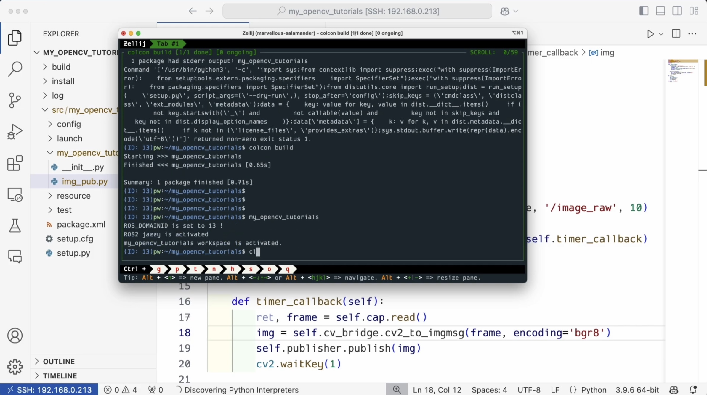 cd 로 my_opencv_tutorials에 가서 my_opencv_tutorials 환경을 부르고, colcon build 를 했어요.