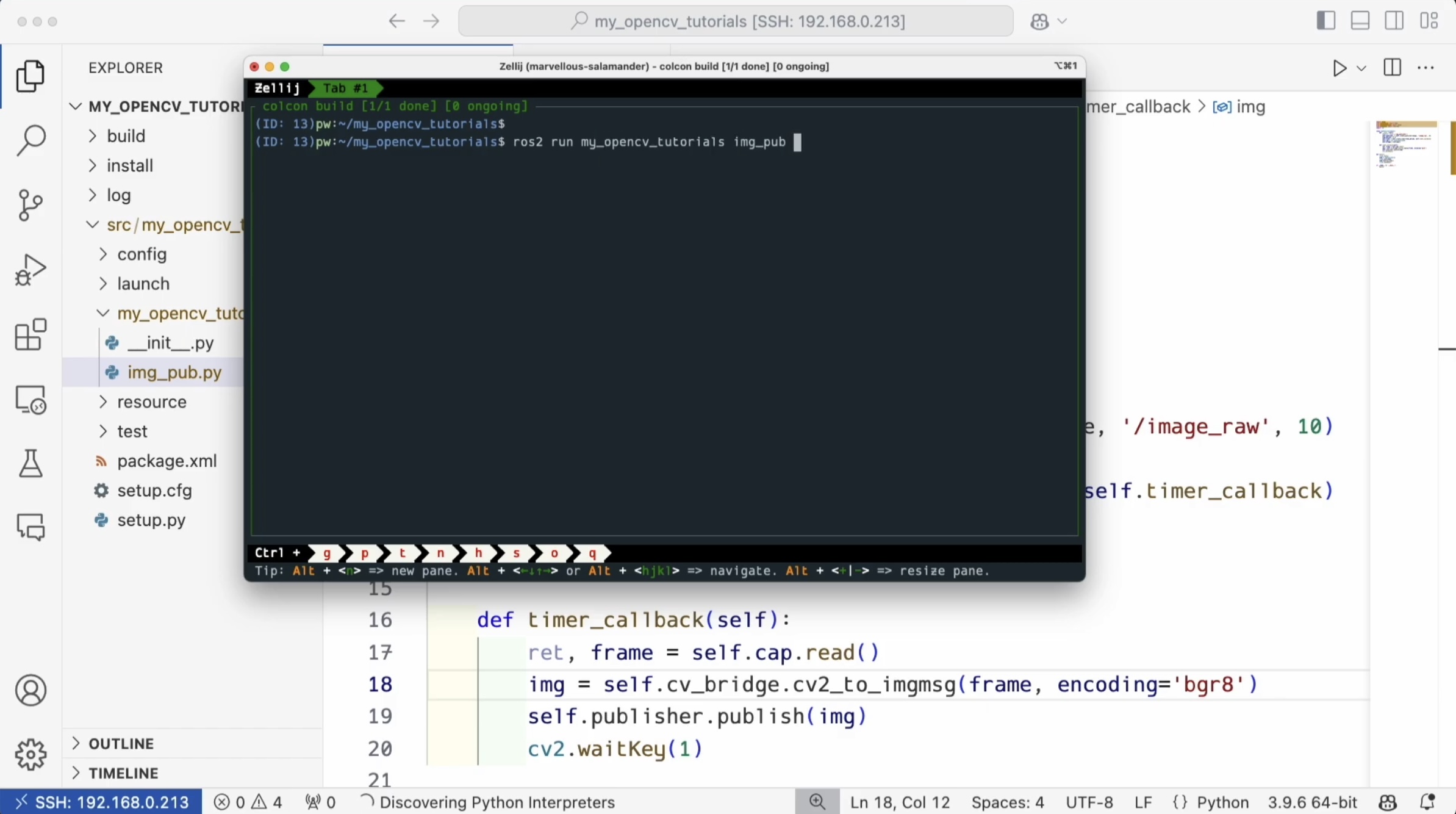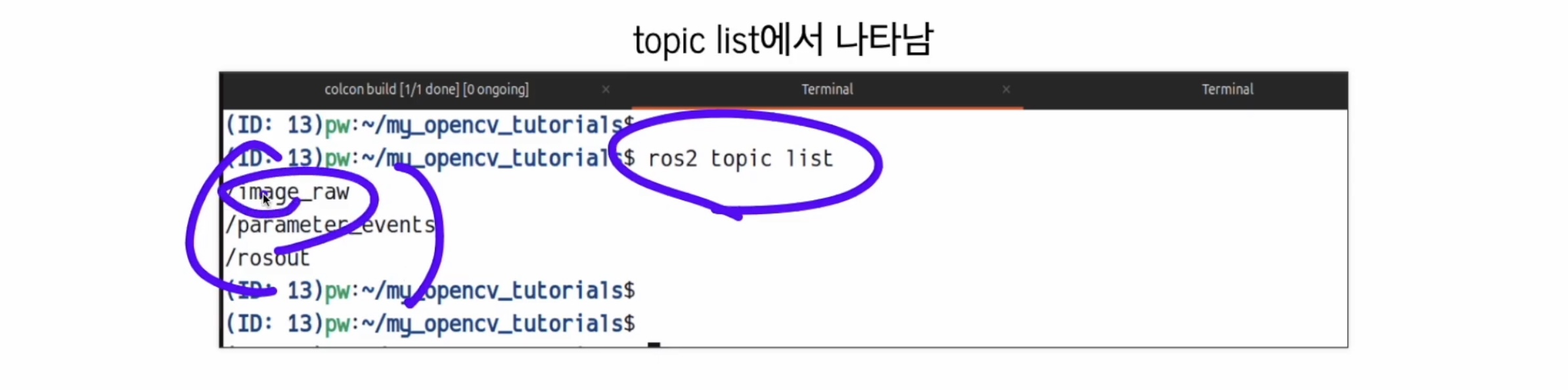 ros2 run my_opencv_tutorials img_pub 실행을 해요.