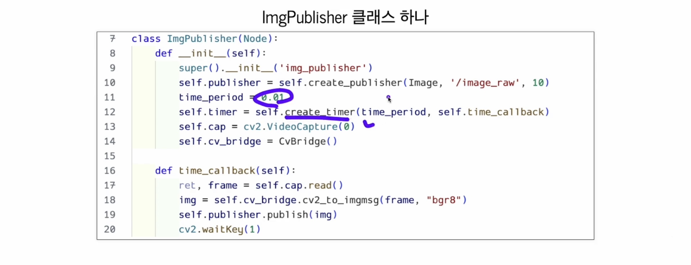 그리고 self.timer 하나 만들어서 self.create_timer로 (time_period) 받아오고,