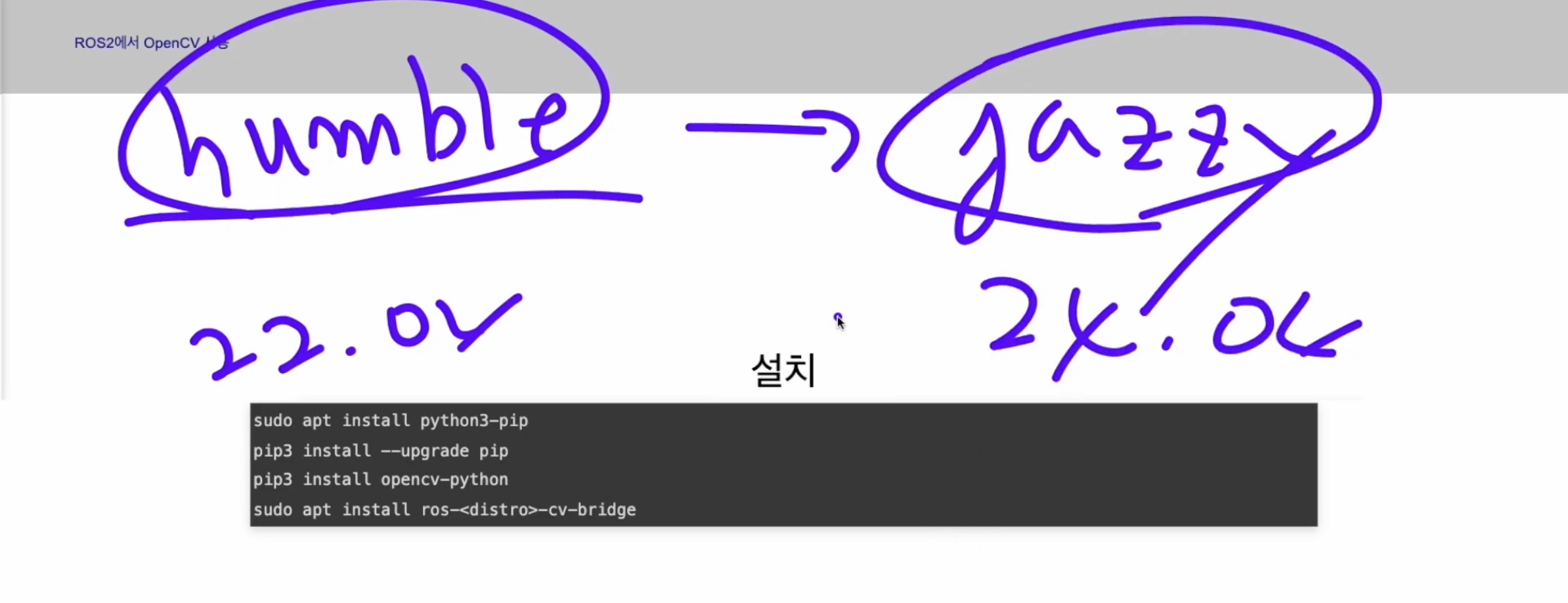 강사님이 이 영상을 찍으시던 시점 기준으로, 우리는 ROS2 humble 에서 jazzy로 넘어가는 중이에요.