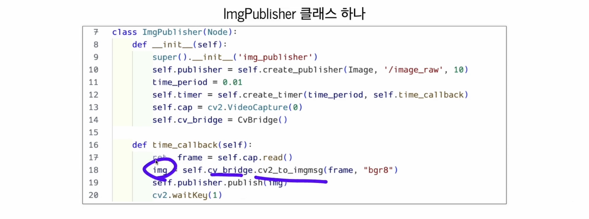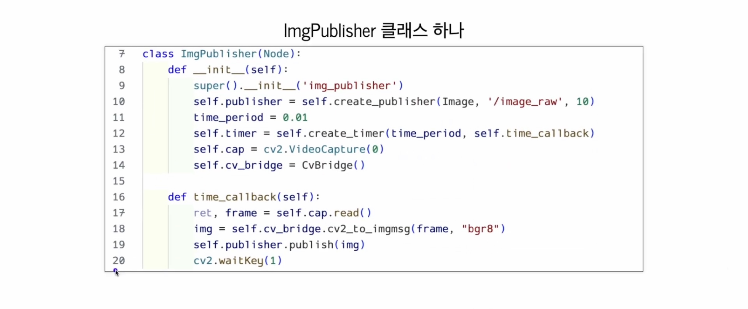 그 다음에 __init__ 안에는 img_publisher라는 이름으로 노드를 선언했어요.