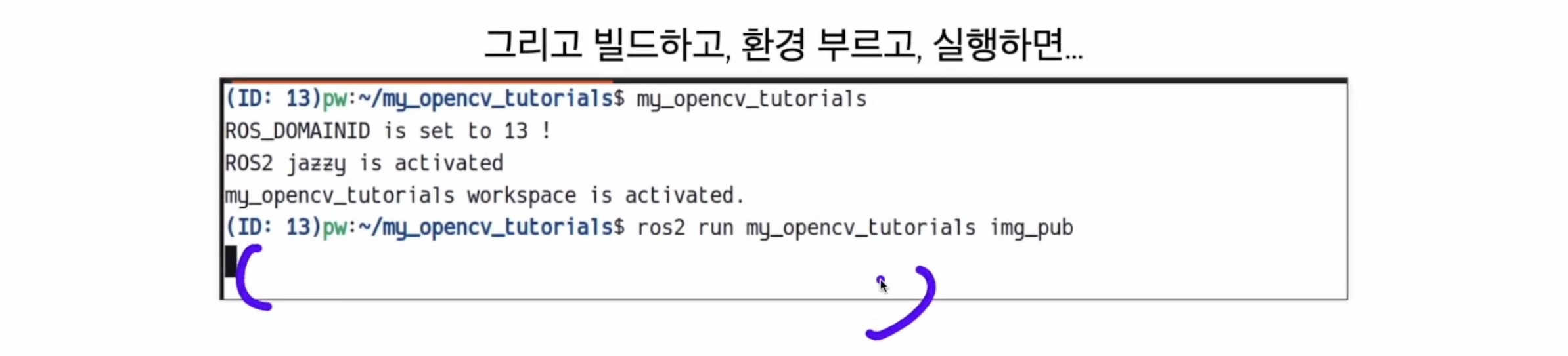 ros2 run my_opencv_tutorials img_pub 실행을 해요.