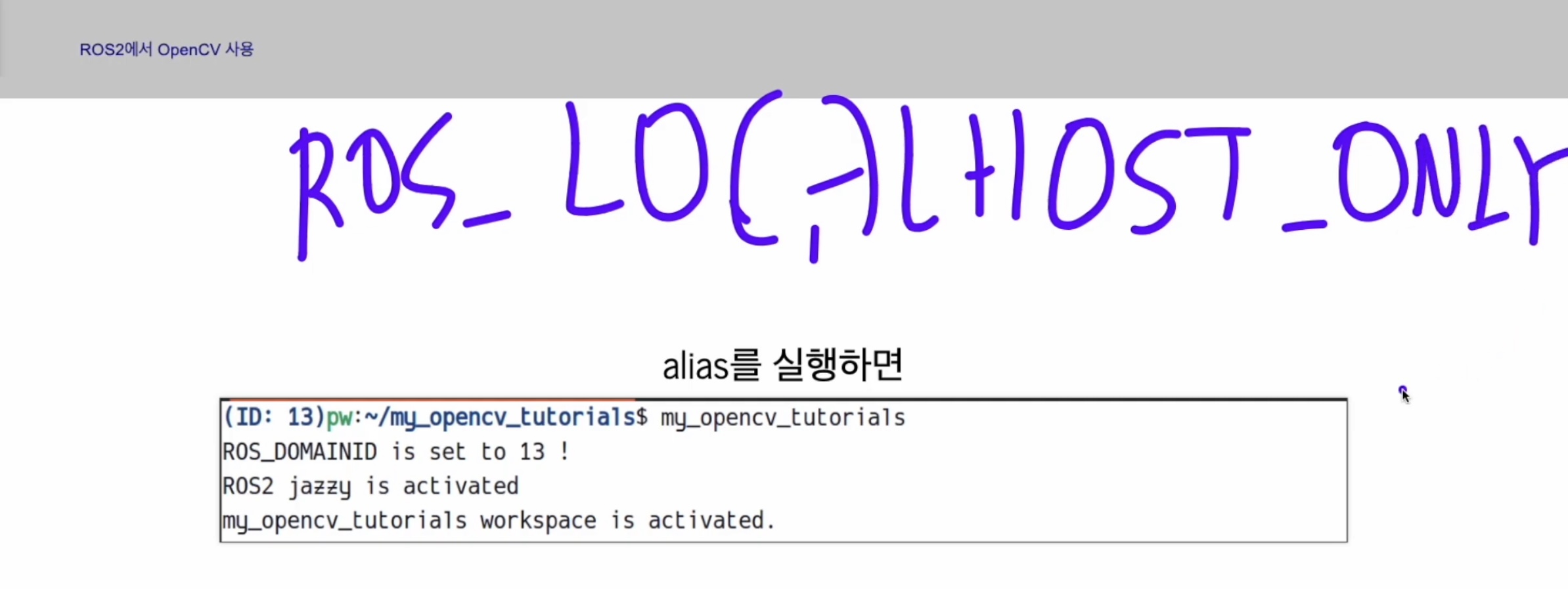 강사님은 여기 ROS_DOMAINID가 세팅되어있는데, 여러분들은 ROS_LOCALHOST_ONLY를 1로 세팅을 해야해요.