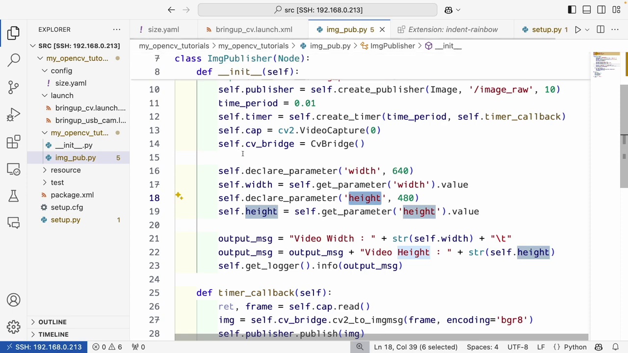 width, height라는 parameter를 선언하고 yaml 파일에서 가져오는 건 했는데,, 그걸 패키지 내에서 적용은 하지 않은거에요.