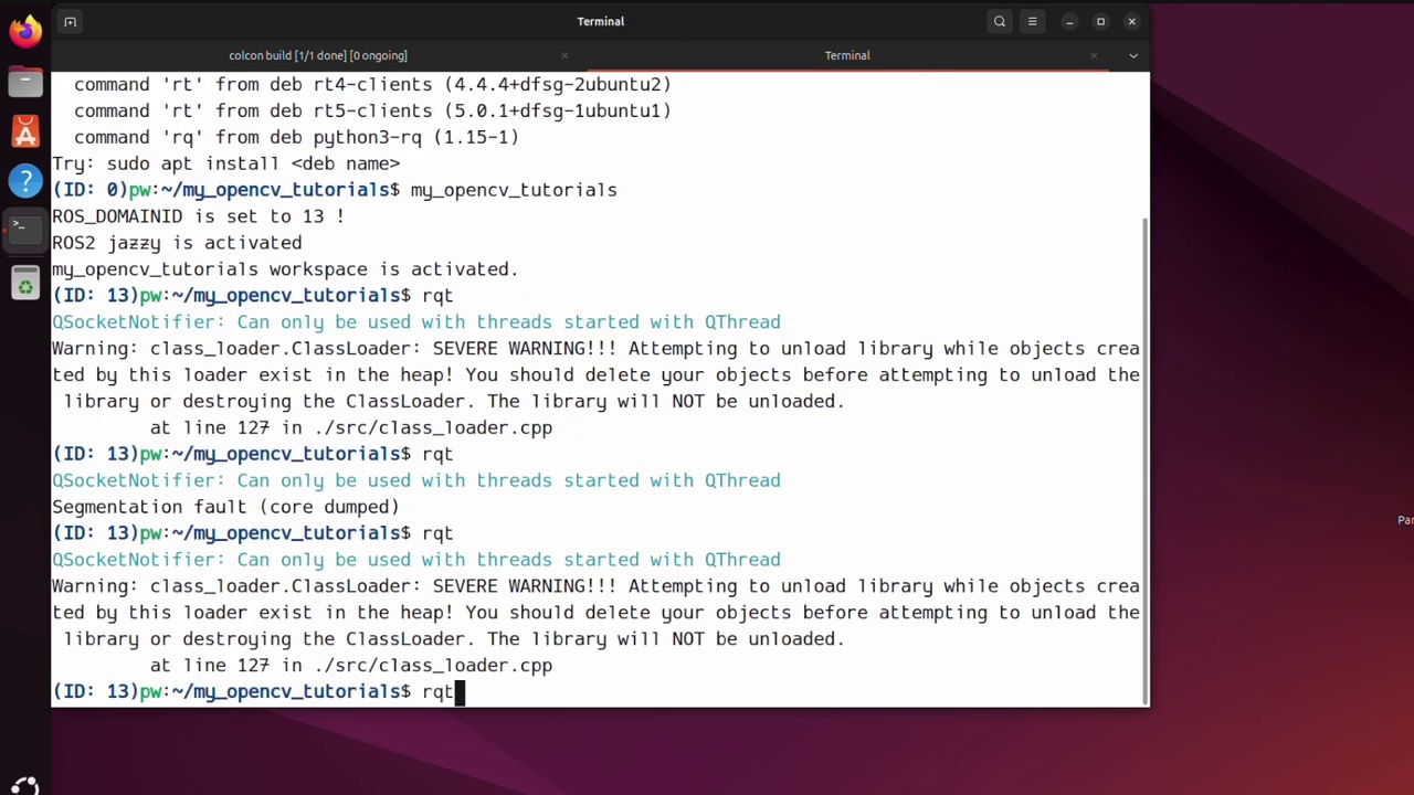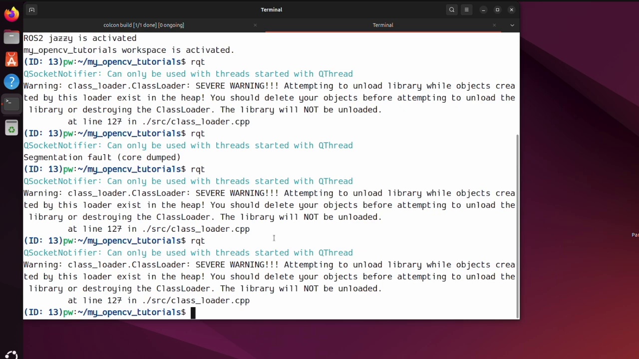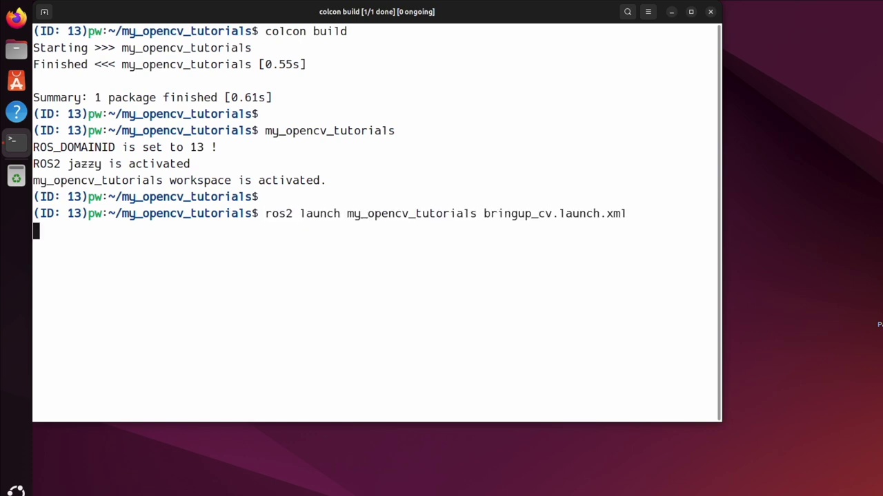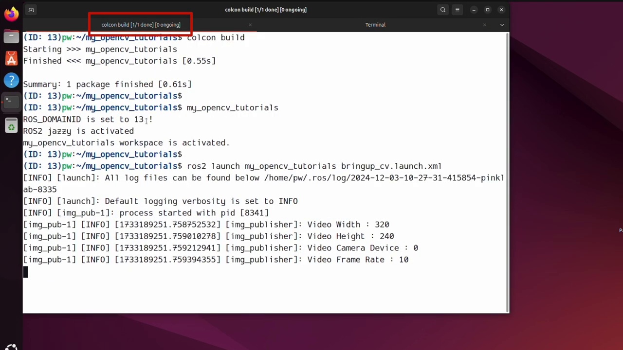 colcon build 하구요, my_opencv_tutorials 환경 부르고 ros2 launch 로 실행 해 볼게요. 초당 한 번 쏘라는 거에요.