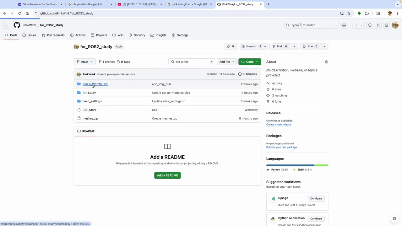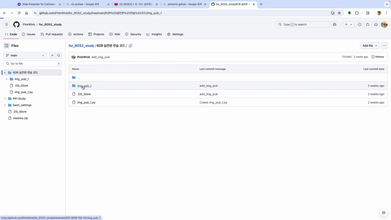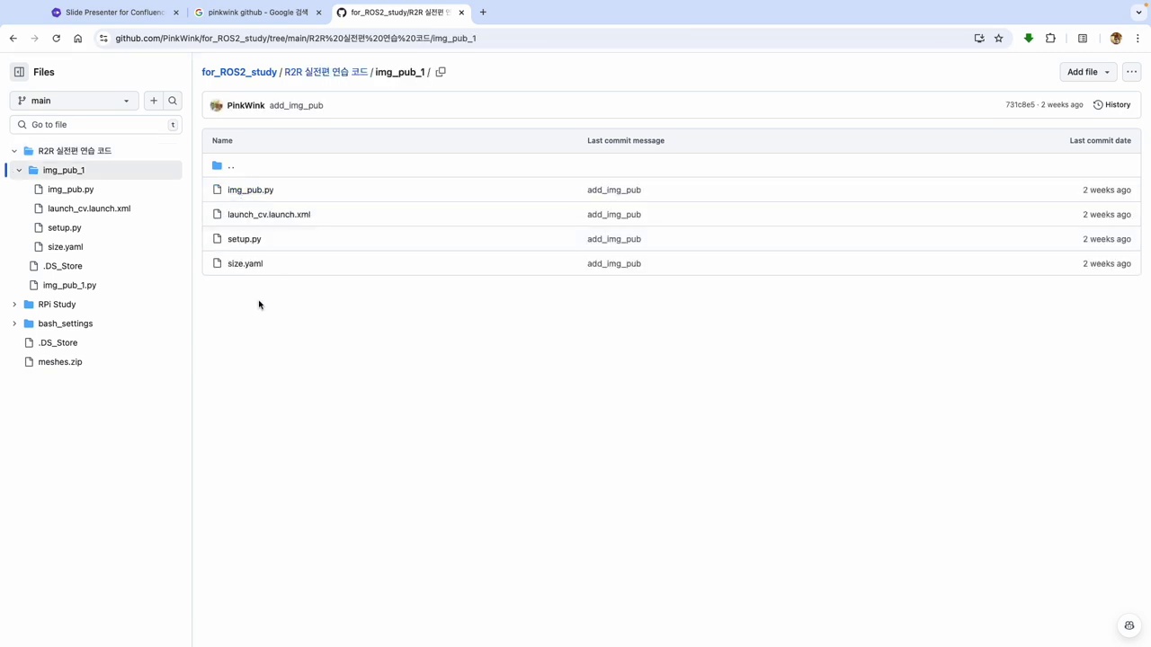 Repositories에 들어가셔서 , for_ROS2_study 들어가셔서