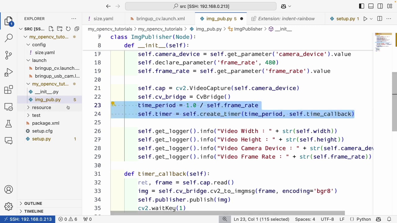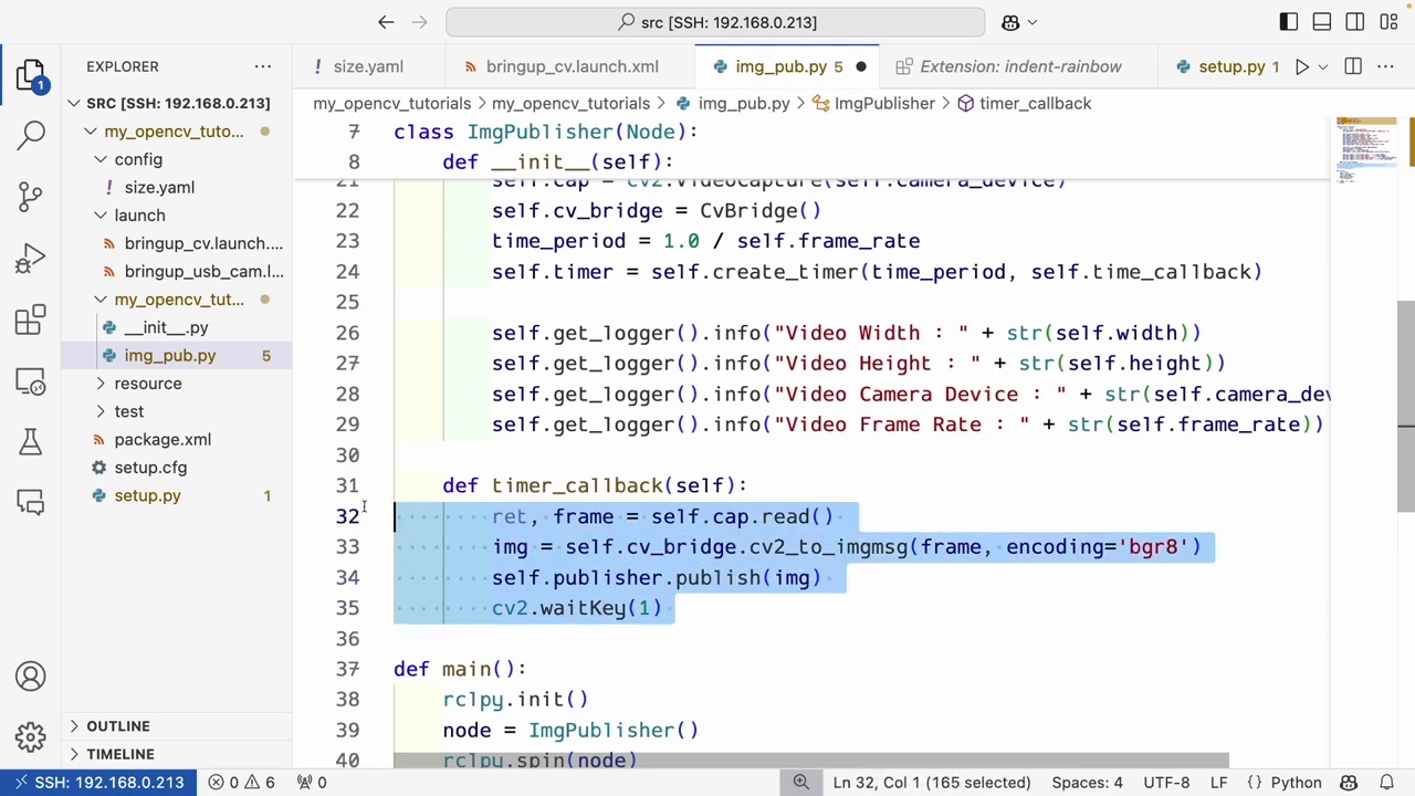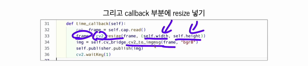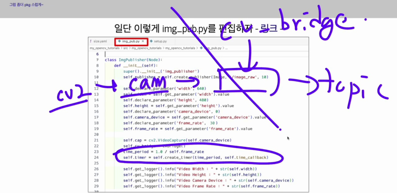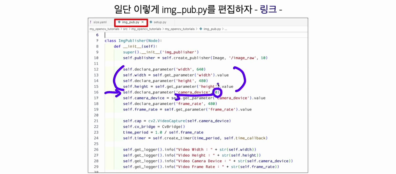 우리가 opencv에서 카메라를 열고 그 다음에 이 카메라에서 영상을 받아서 토픽으로 쏘는 작업을 하고 있어요.