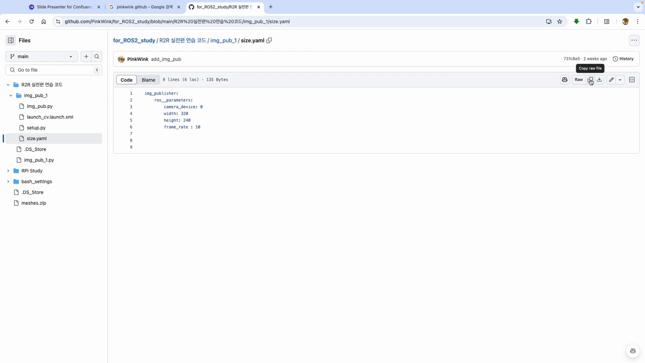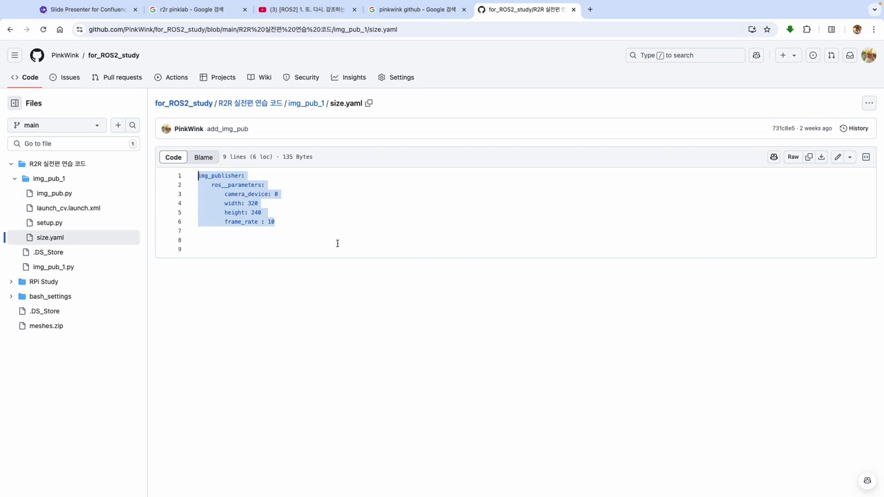 이번에는 size.yaml에 가서, (그럼 이름이 size가 되면 안되는데.. camera.yaml 이어야하는데!)