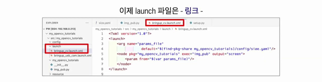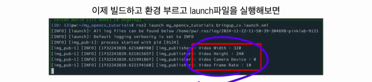 ros2 launch my_opencv_tutorials bringup_cv.launch.xml로 런치파일 실행을 해요.