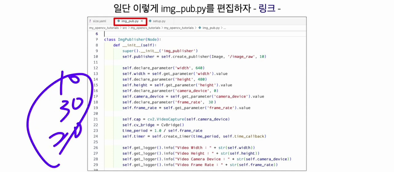 이번시간에는 [ OpenCV에서 직접 받은 영상을 ROS2에서 FPS, size 조절하기 ] 를 배워 봤어요.