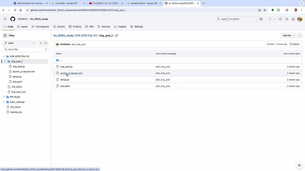 Repositories에 들어가셔서 , for_ROS2_study 들어가셔서