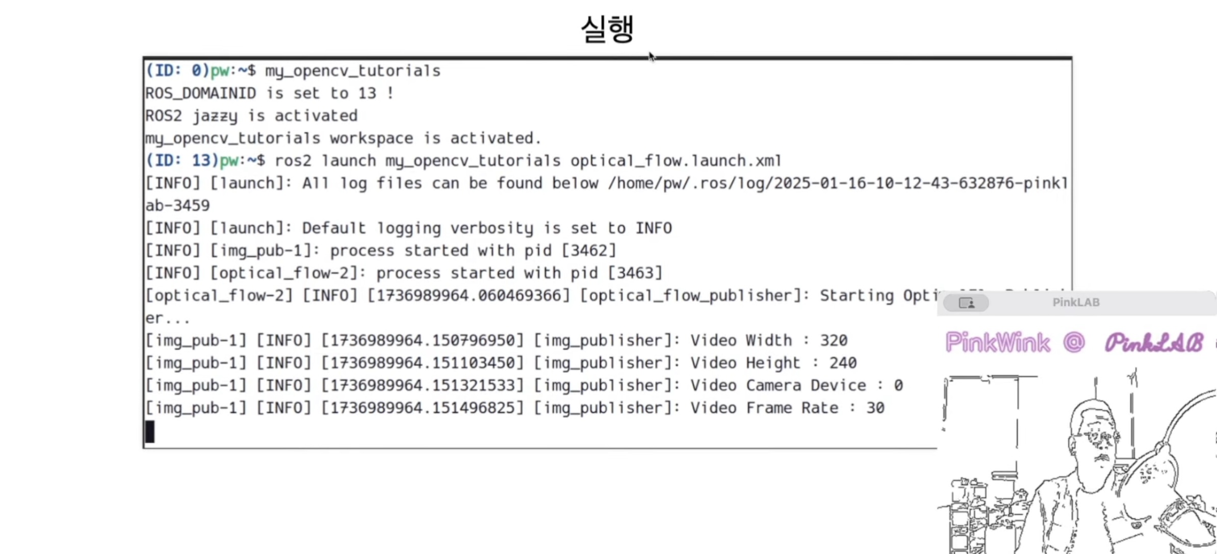 그러고난 다음에 ros2 launch로 my_opencv_tutorials에서 optical_flow.launch.xml 실행을 하면 된답니다.