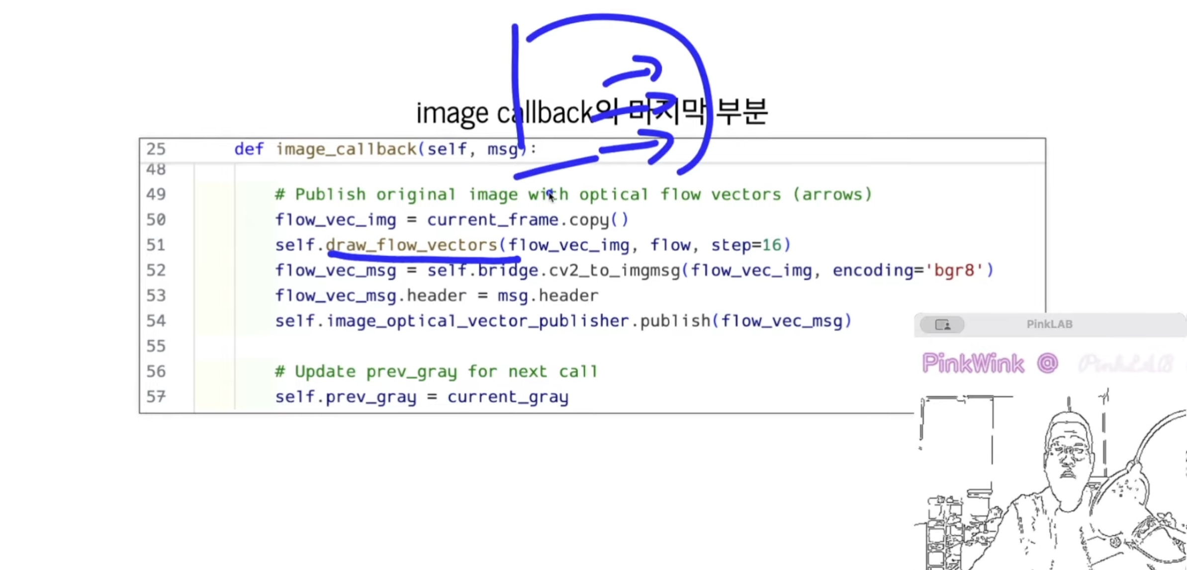 그리고 그 안에는 __init__과 image_callback과 draw_flow_vectors 가 있어요.