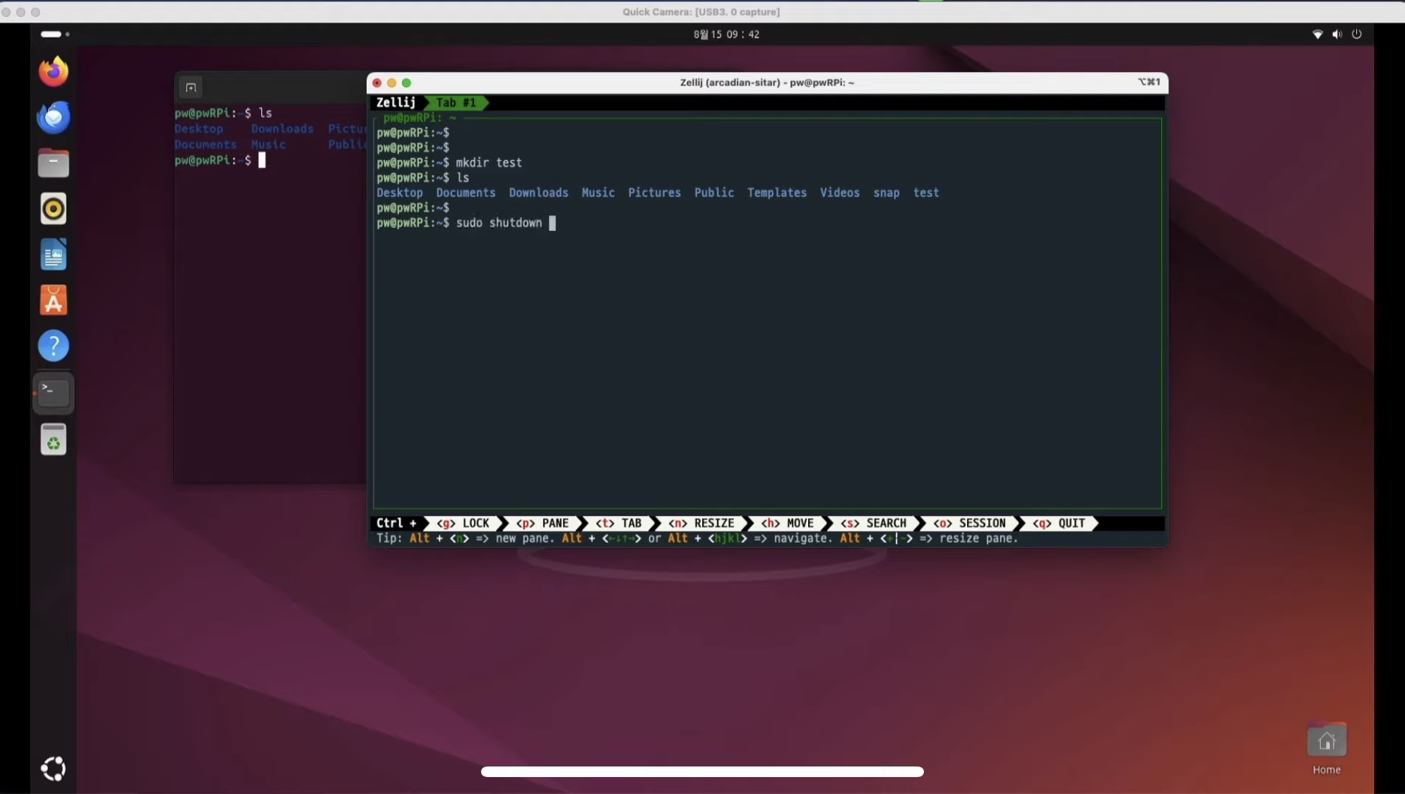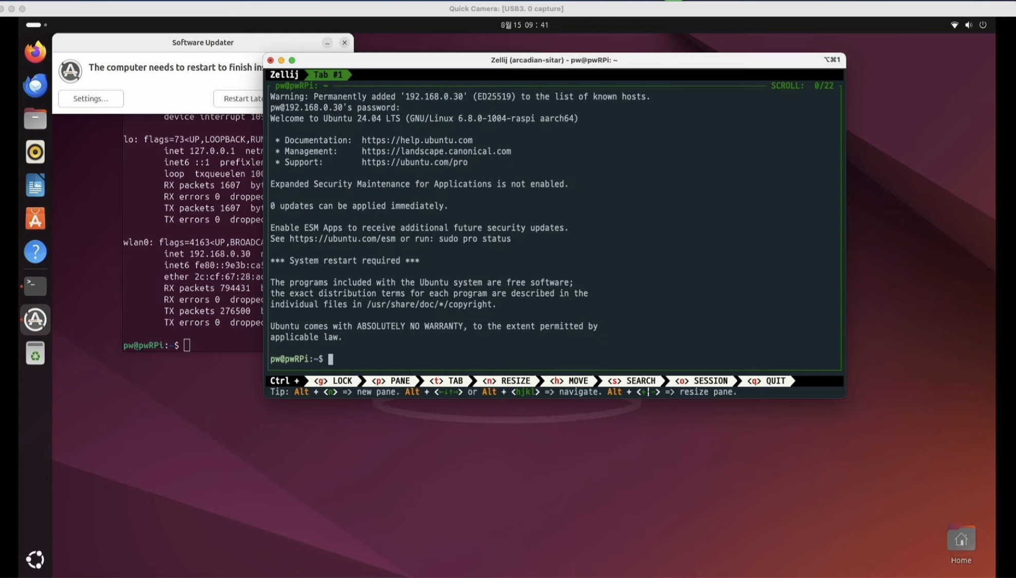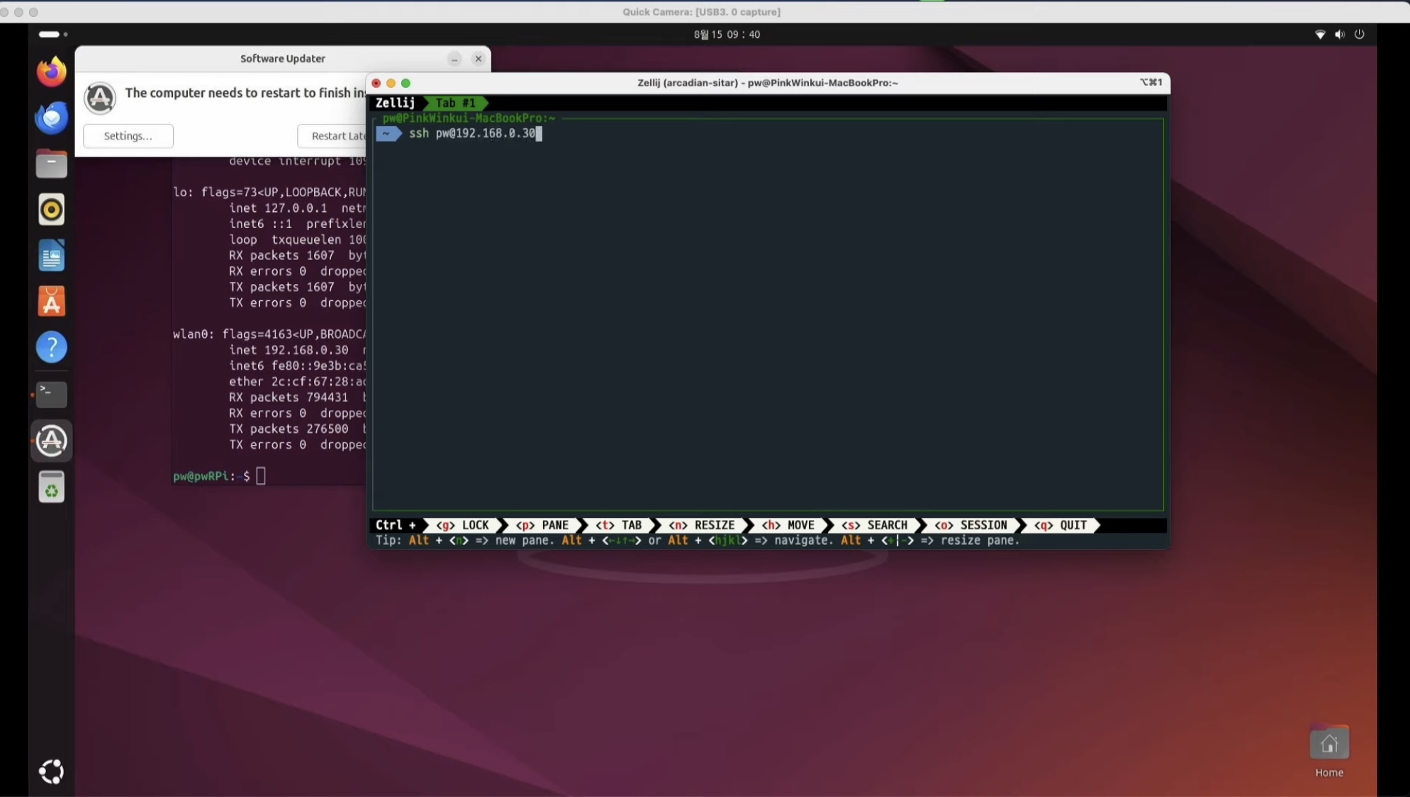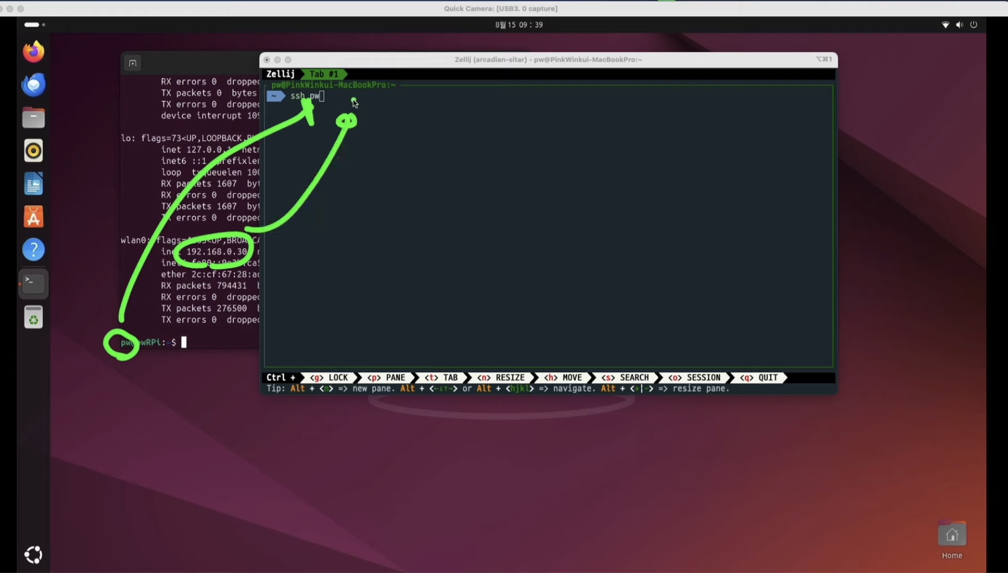 이 창이 뭐냐면.. mac에서 띄운 터미널이에요. 뒤의 화면은 ubuntu가 설치된 rasberrypi구요,
