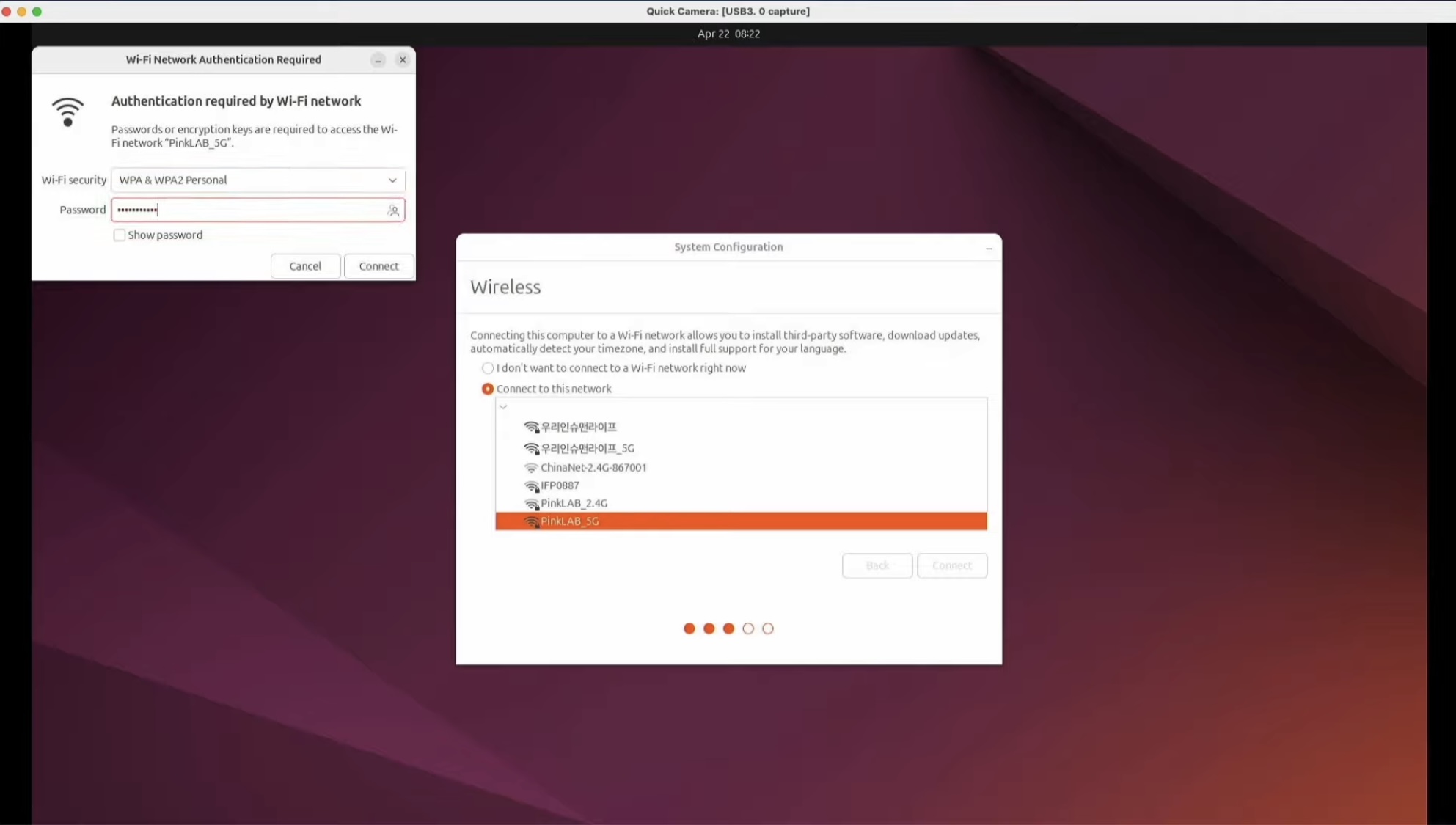 강사님께서는 PinkLAB에 계셔서 PinkLAB 와이파이 잡았구요, connect눌러줬어요.