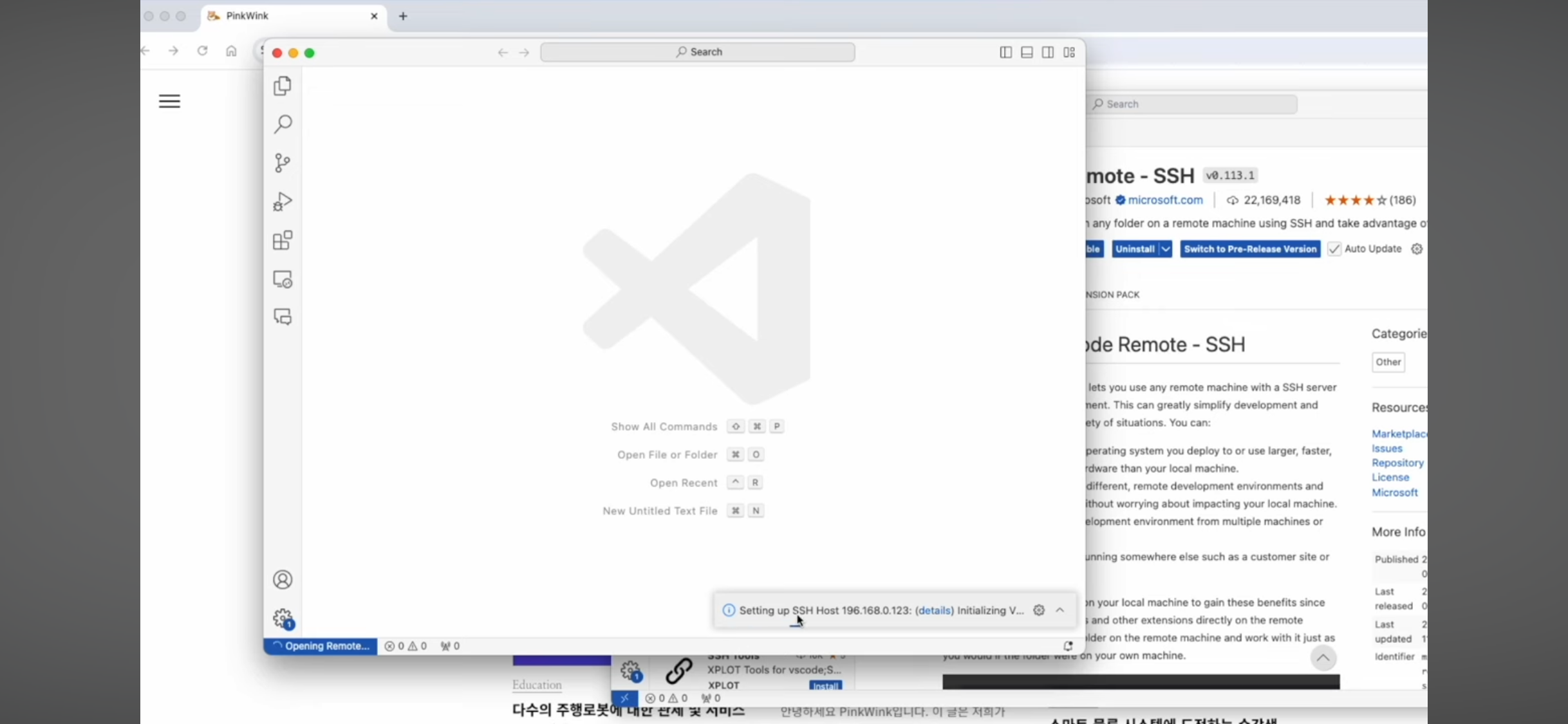 새로 뜨고 여기 보면 setting up ssh host 이쪽 경로에 insolization 어쩌고 뜨잖아요, 이게 한 번 나와요. (지루하신가요...!?!??!ㅋ_ㅋ 곧 넘어가요!!)