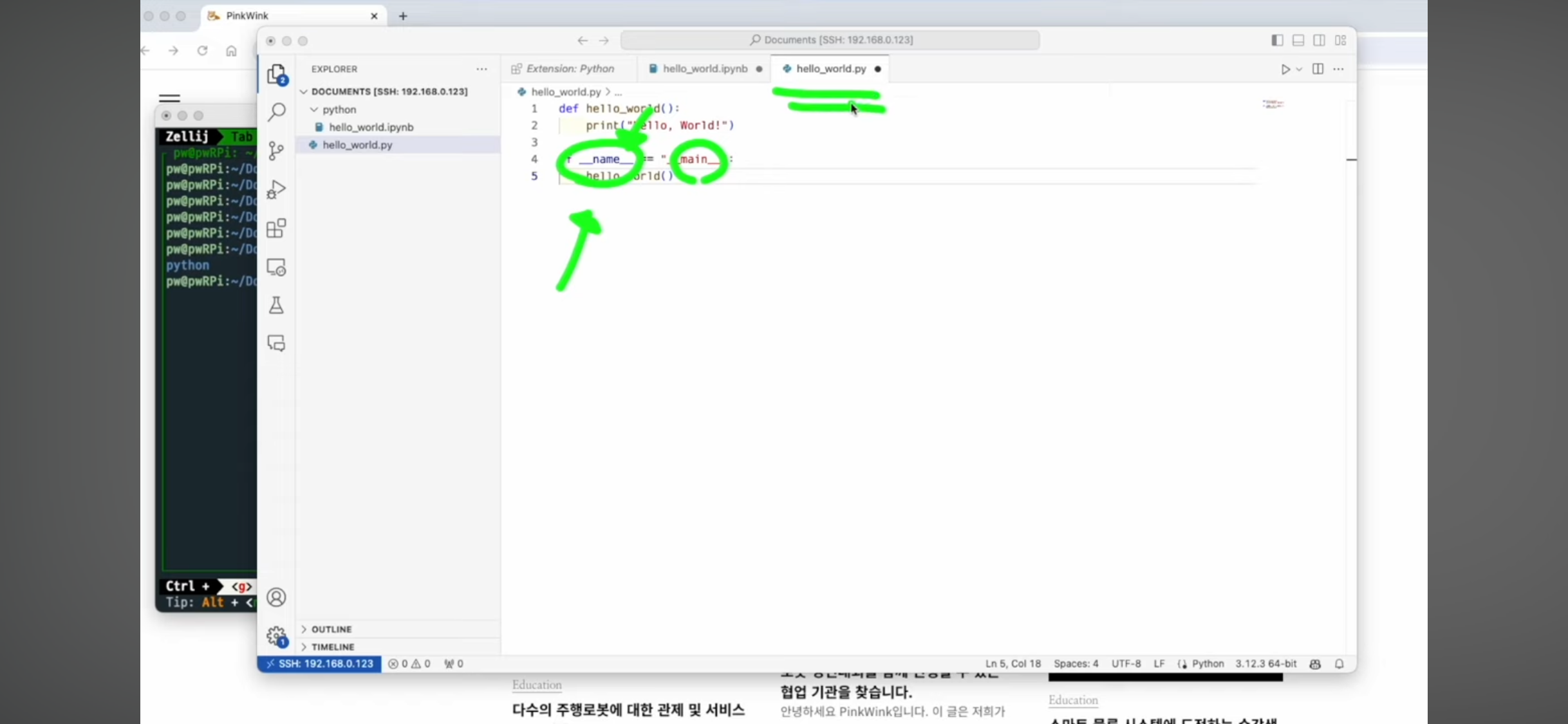 여기서는 이제 어떻게 실행을 하냐면.. python3 hello world.py 하면 실행이 돼요.