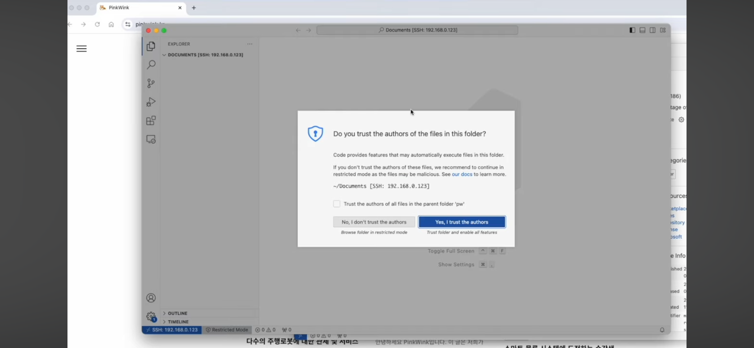 Yes. 그리고 pw. Pw는 내 컴퓨터가 아니고 ssh로 접근 할 라즈베리파이에서 설정했던 암호여야해요.