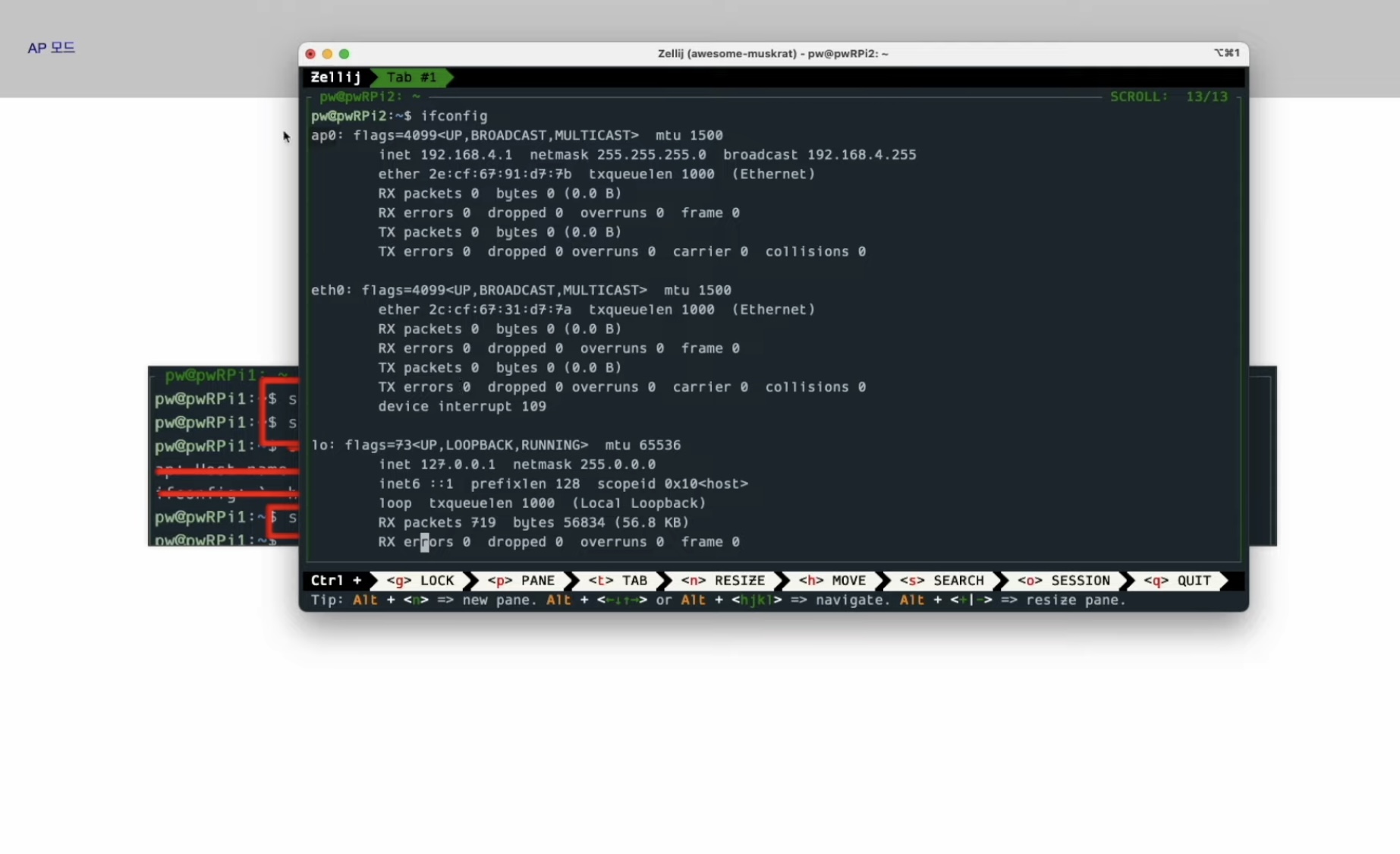 그 다음에 sudo ifconfig ap0 up! 시작, 됐어요.