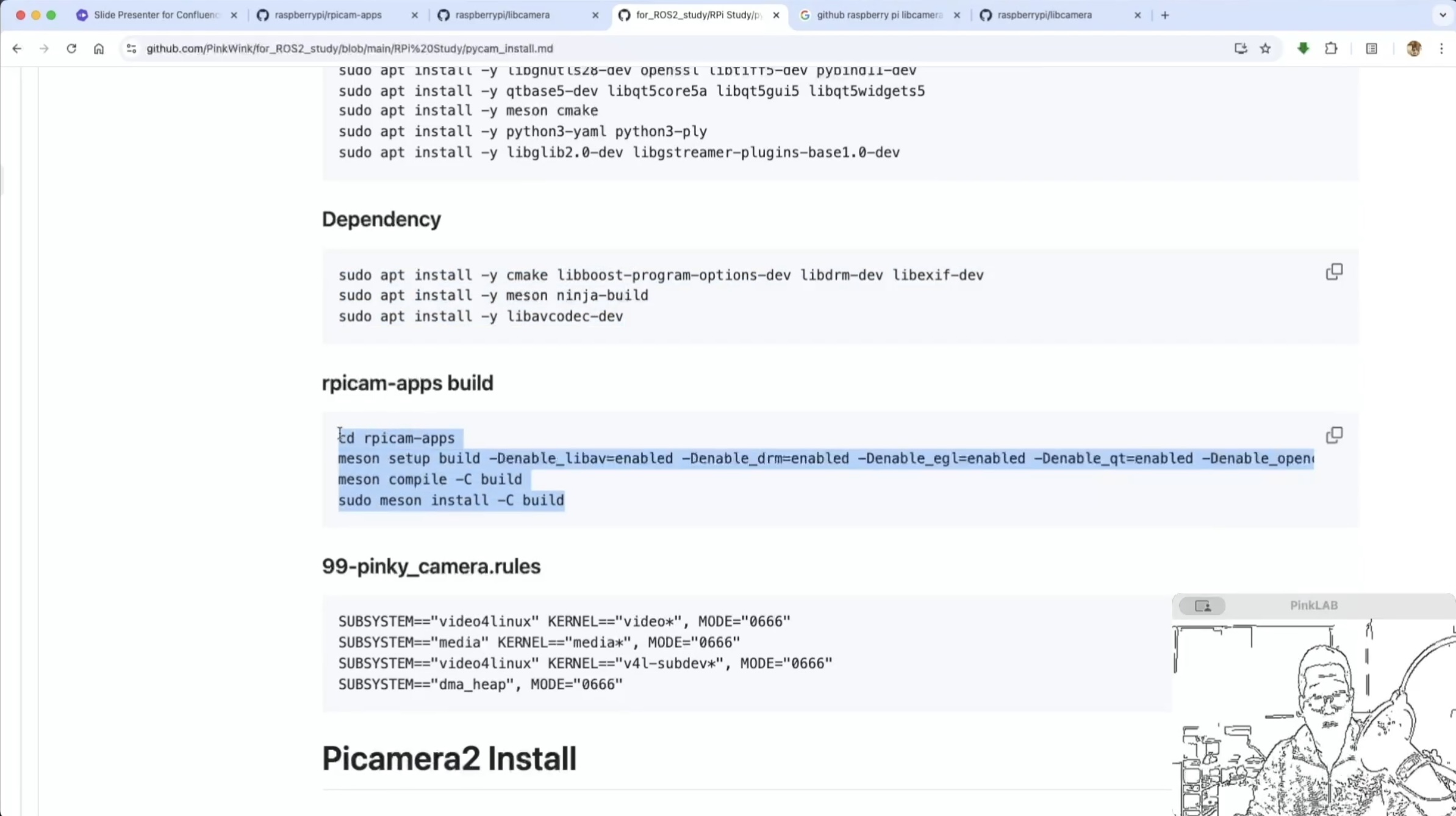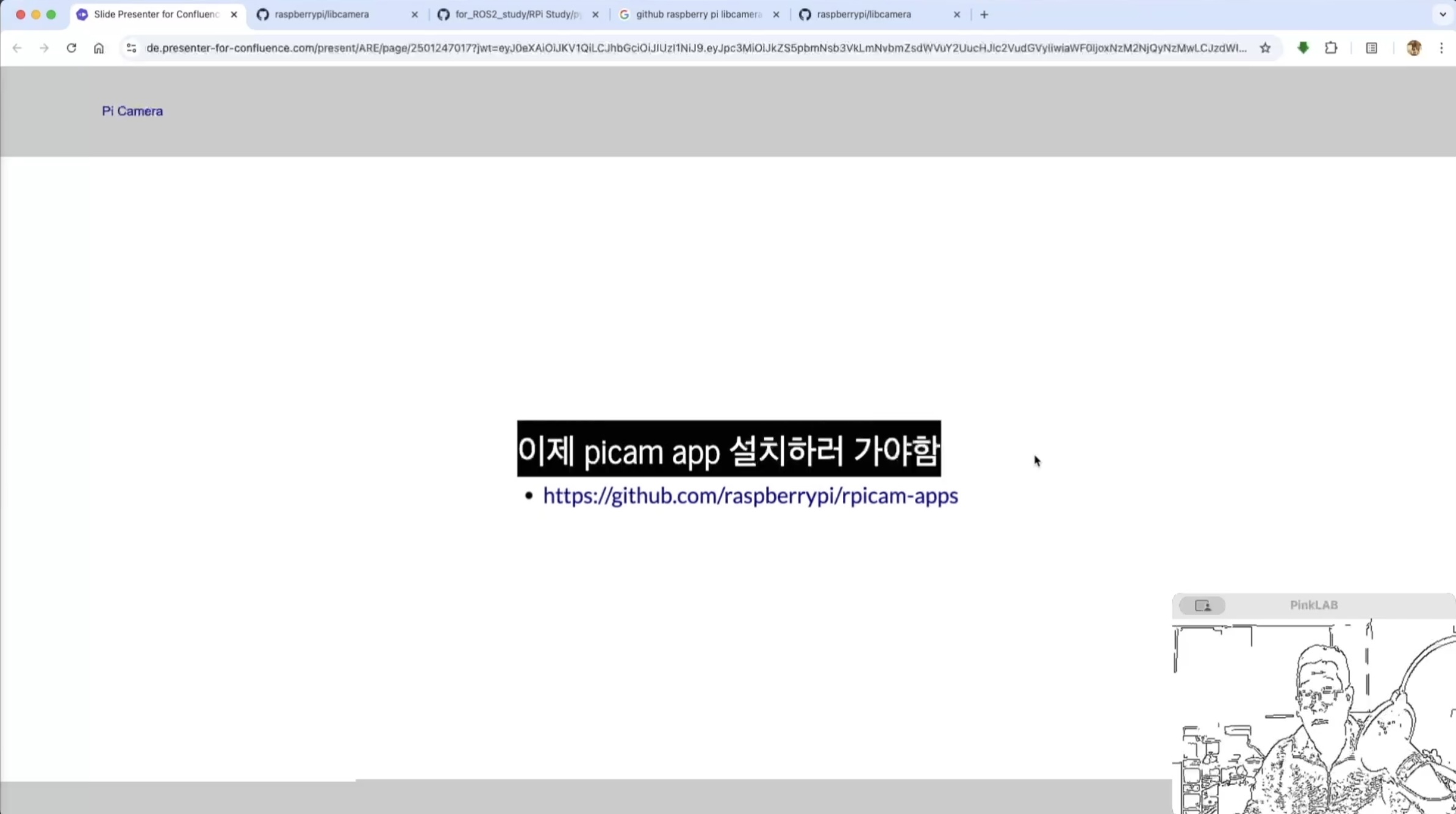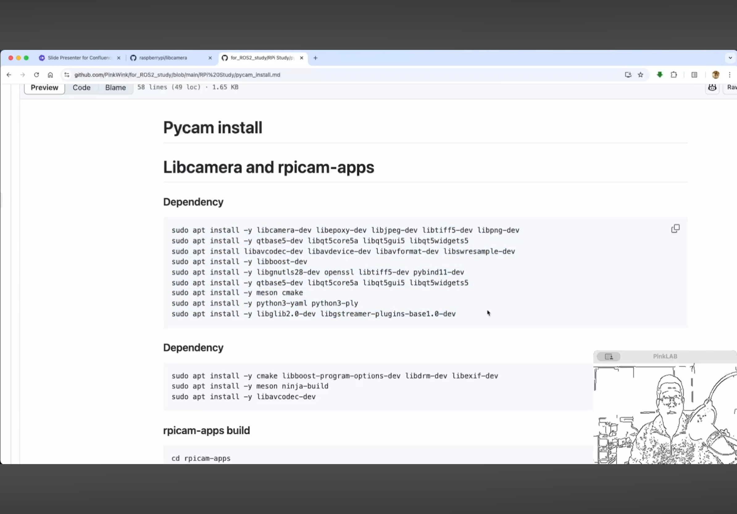 강사님께서 따로 만들어 두셨다는 강사님의 Repositories , for ROS2 study 에 있는 pycam_install.md 파일 거기에도 카피가 되어 있어요. 방금 말씀드린 것, 이건 파이캠이에요.