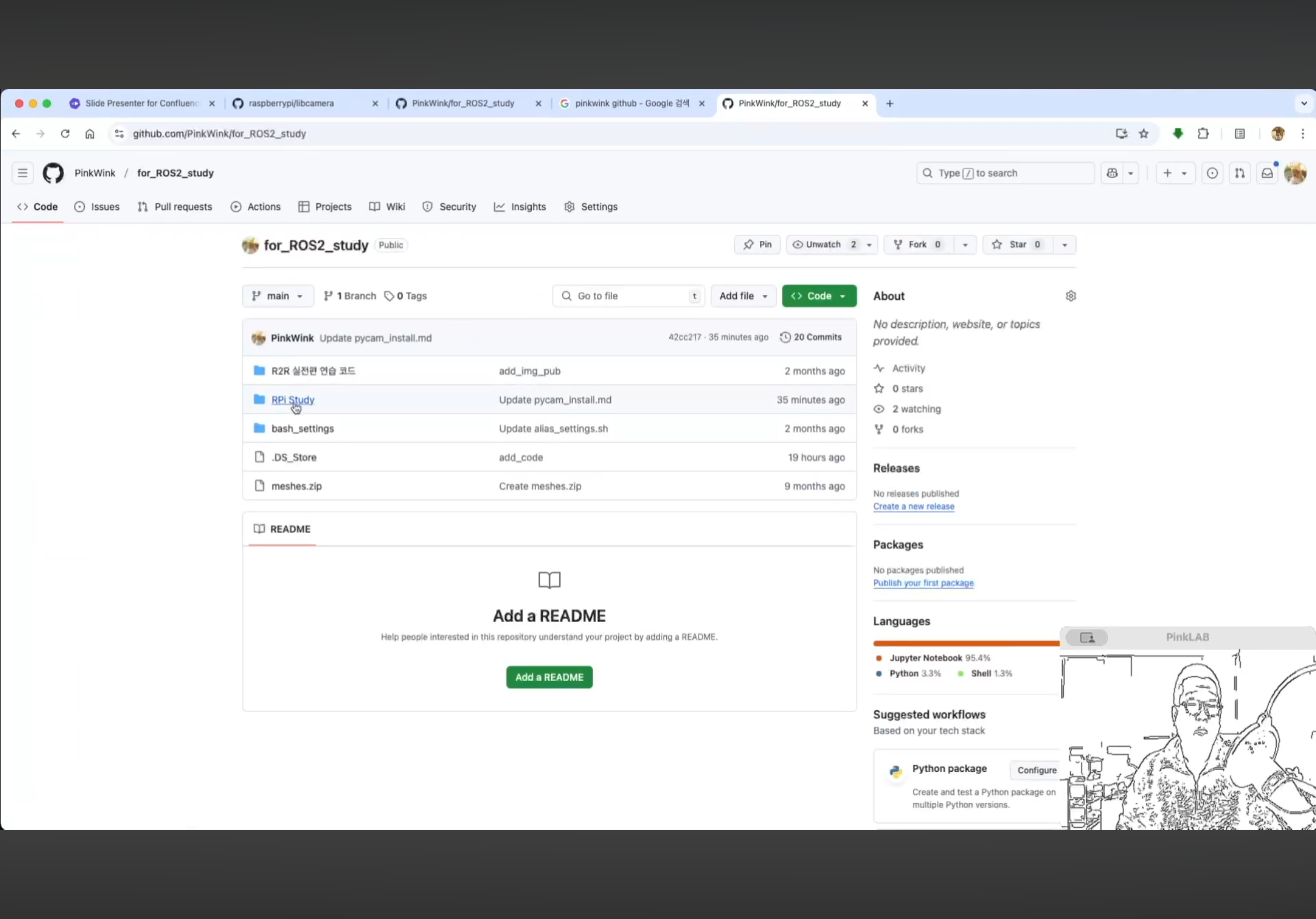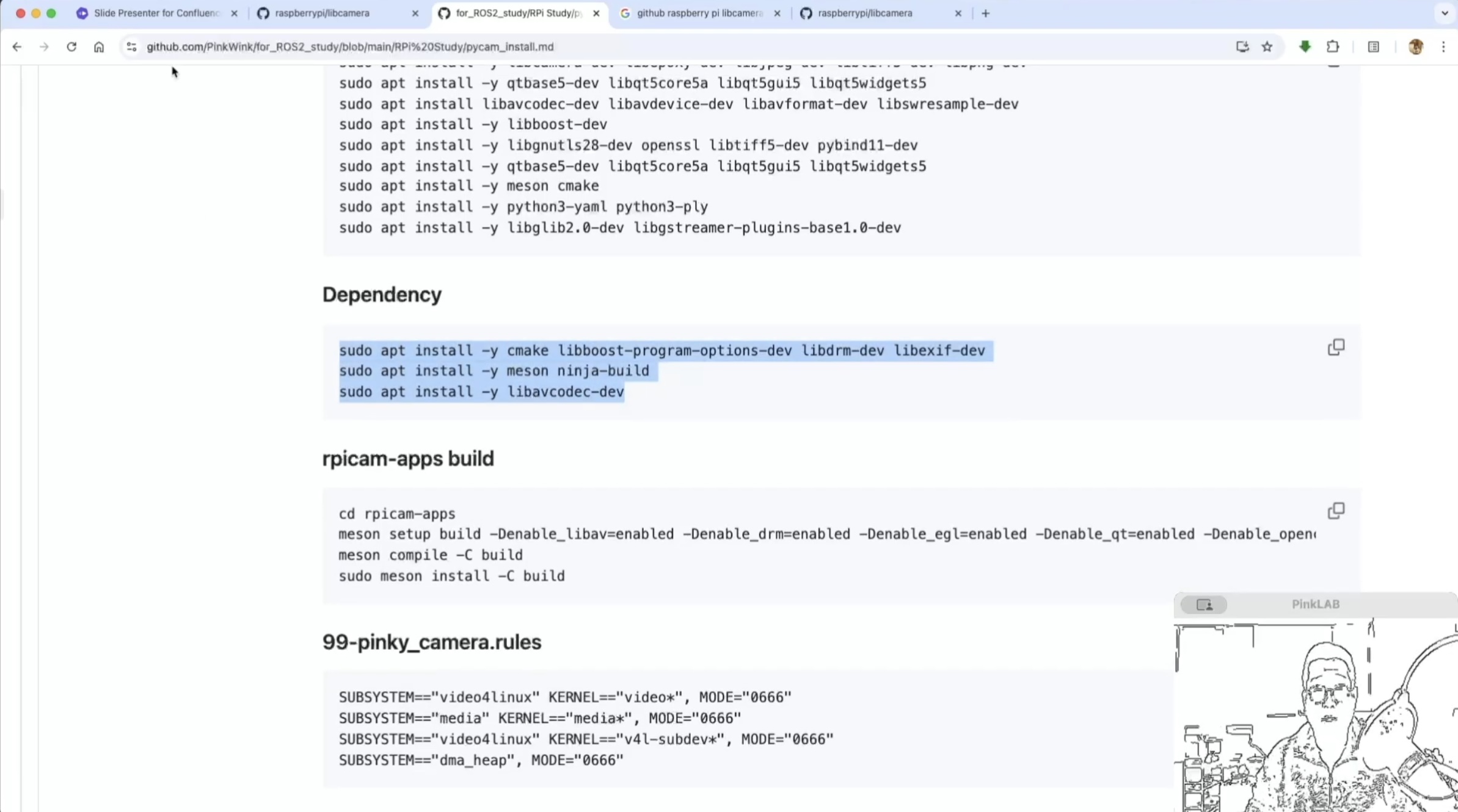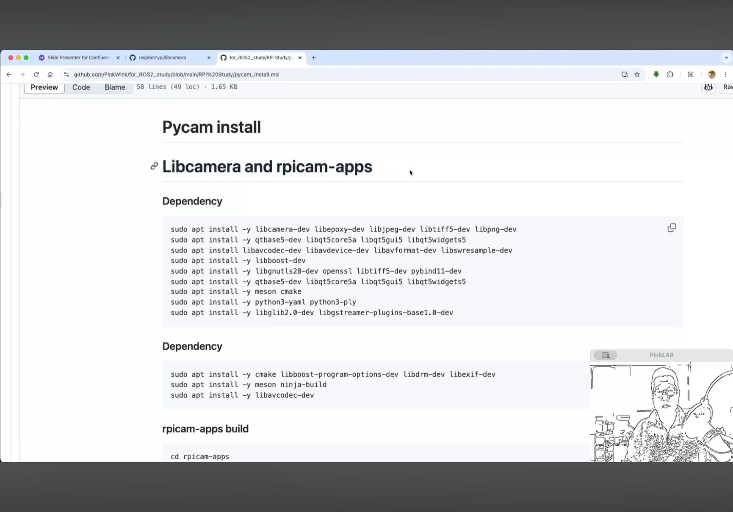 강사님께서 따로 만들어 두셨다는 강사님의 Repositories , for ROS2 study 에 있는 pycam_install.md 파일 거기에도 카피가 되어 있어요. 방금 말씀드린 것, 이건 파이캠이에요.