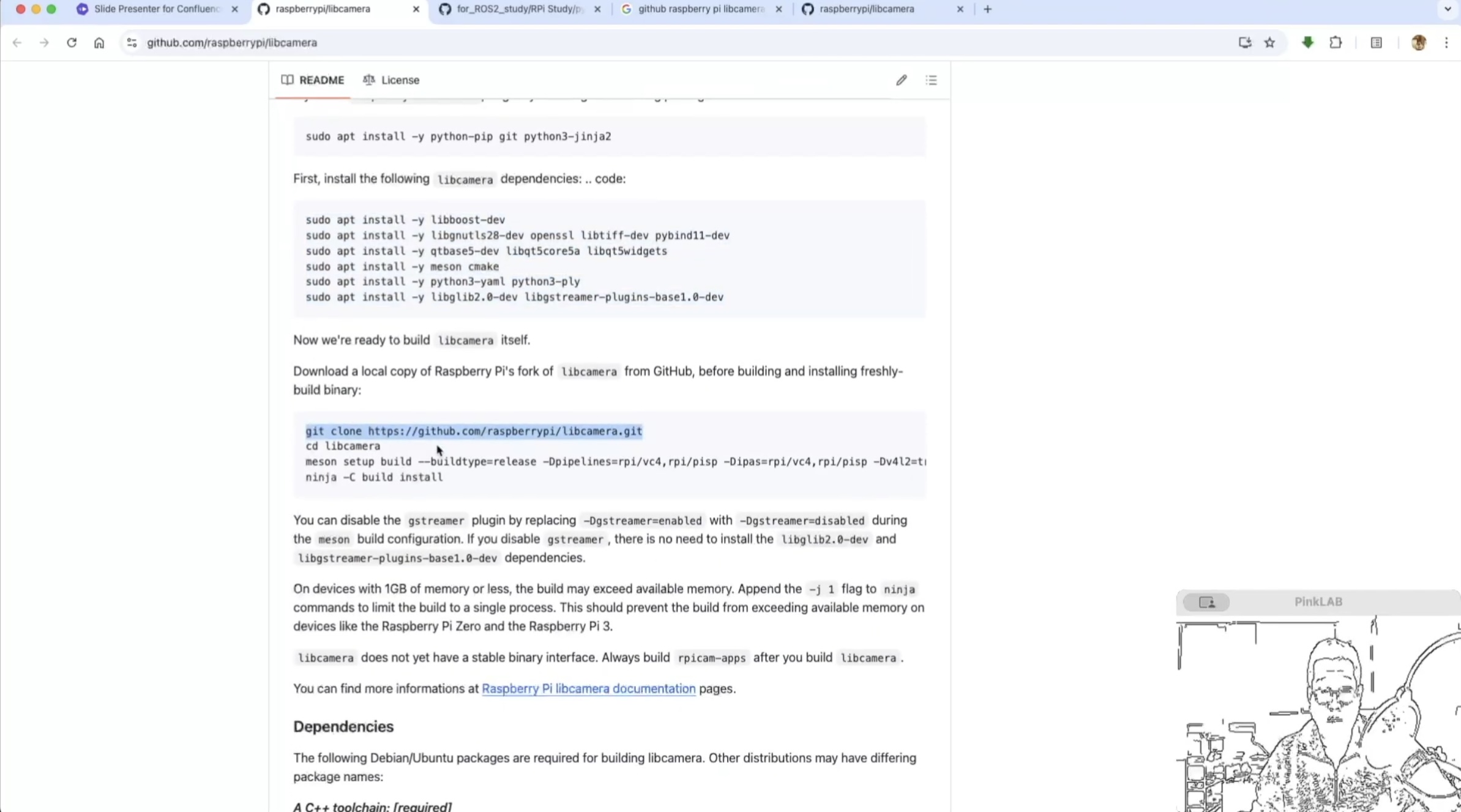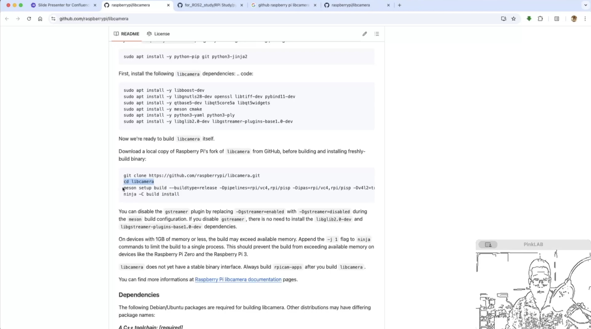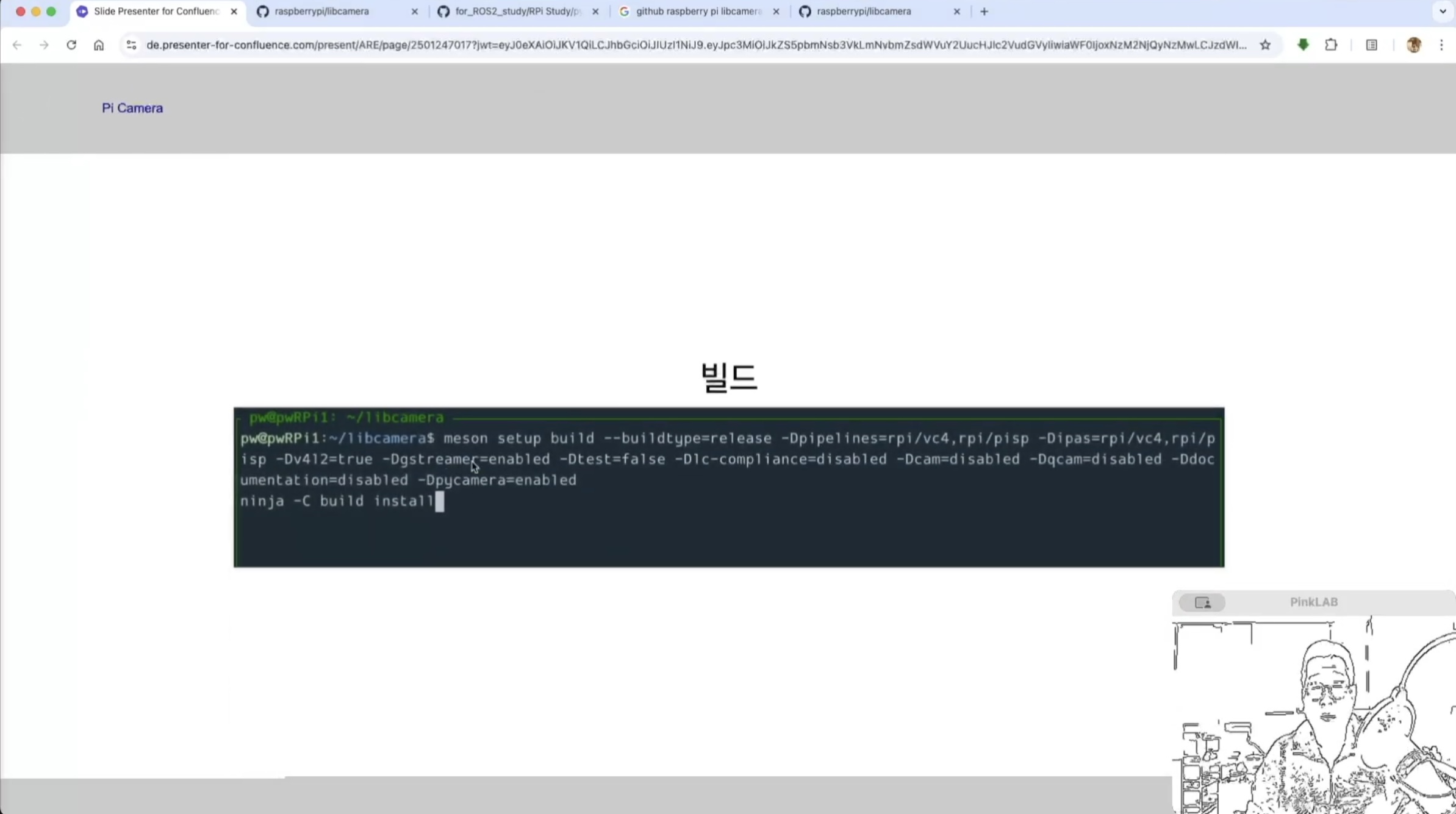 빌드 하는 명령은 여기 libcamera 에서 밑으로 쭉 내려보시면 여기에 있어요.