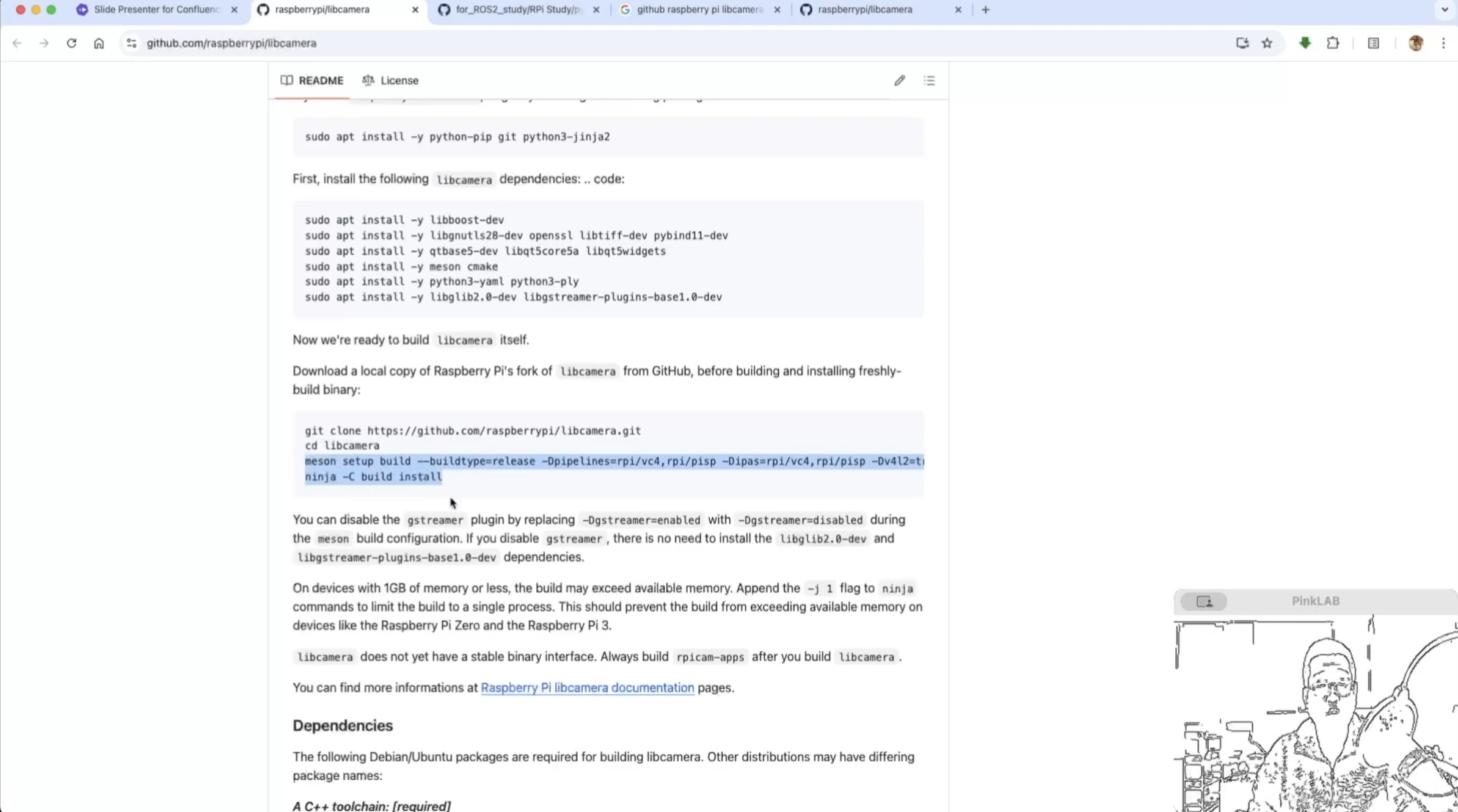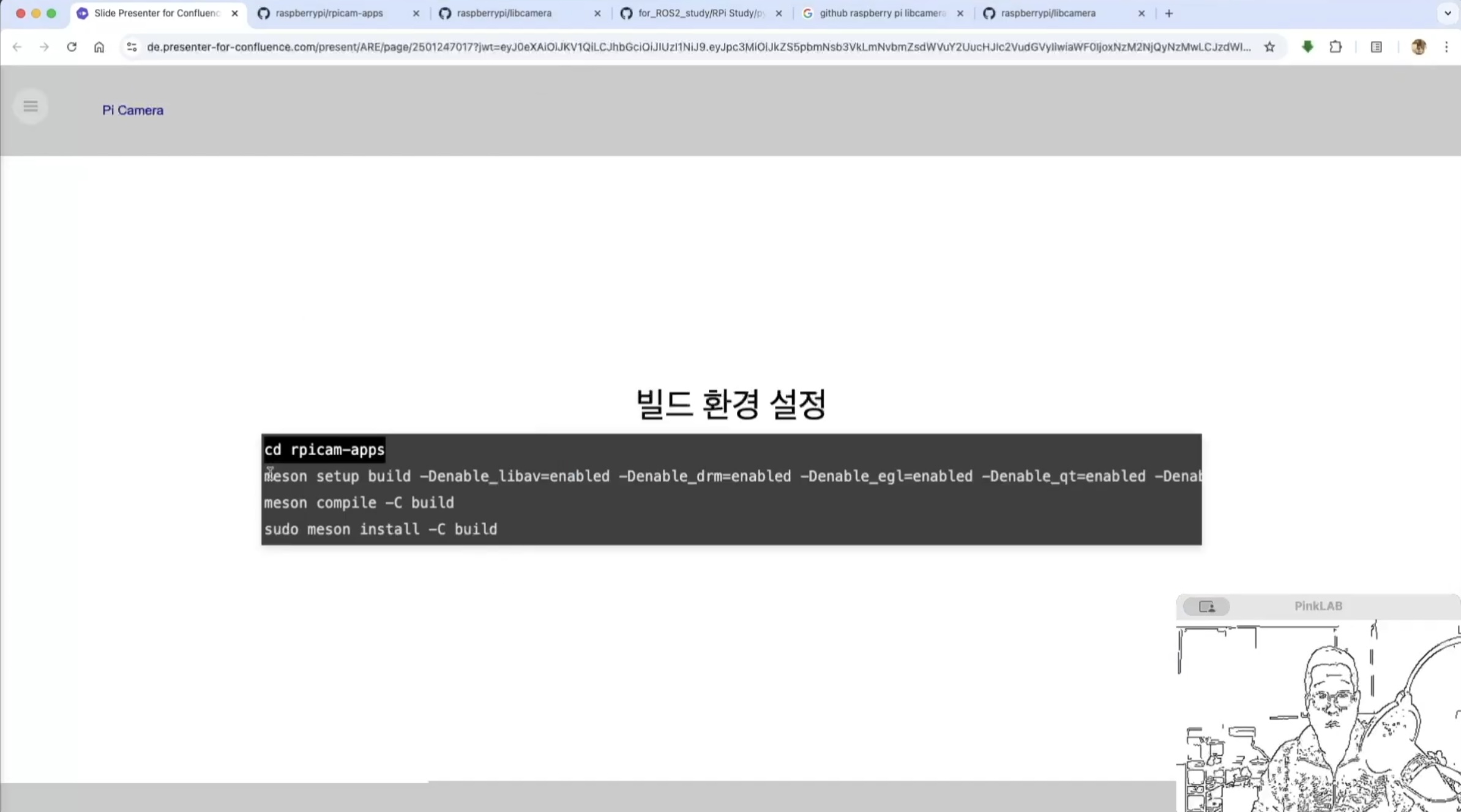 빌드 하는 명령은 여기 libcamera 에서 밑으로 쭉 내려보시면 여기에 있어요.