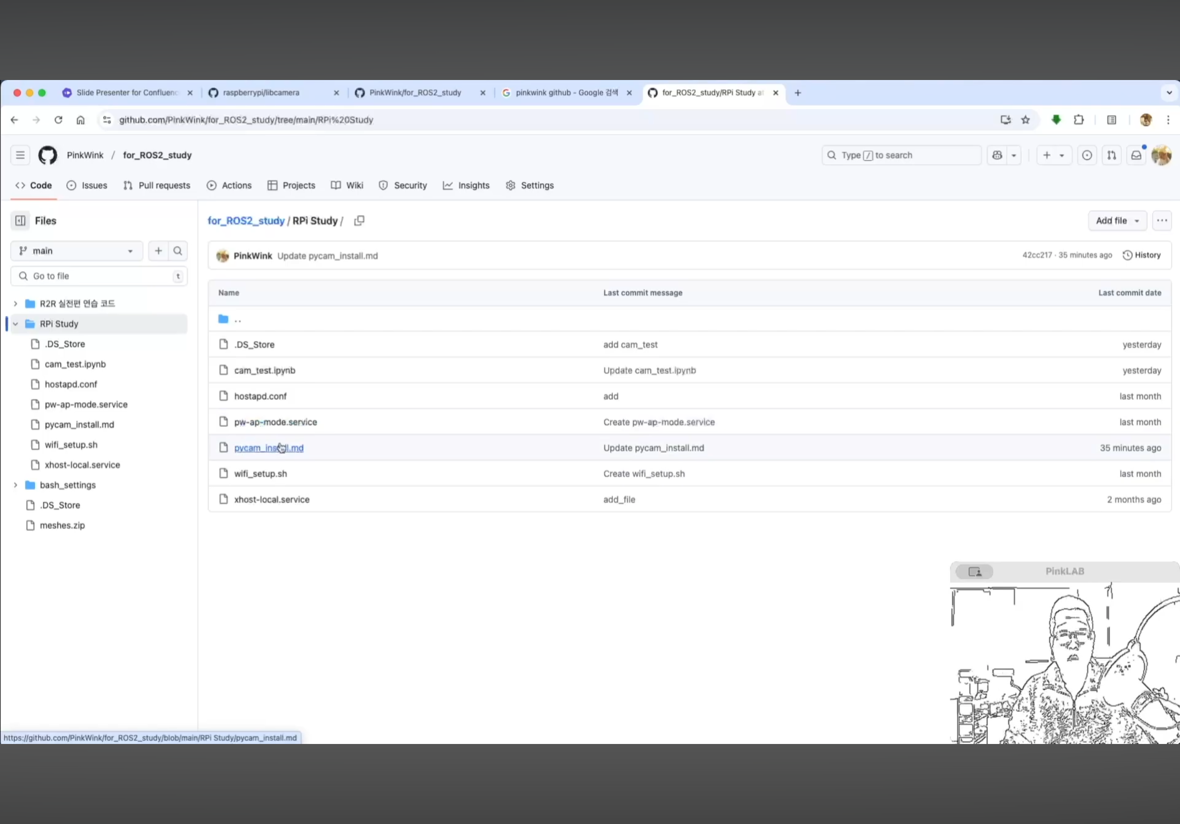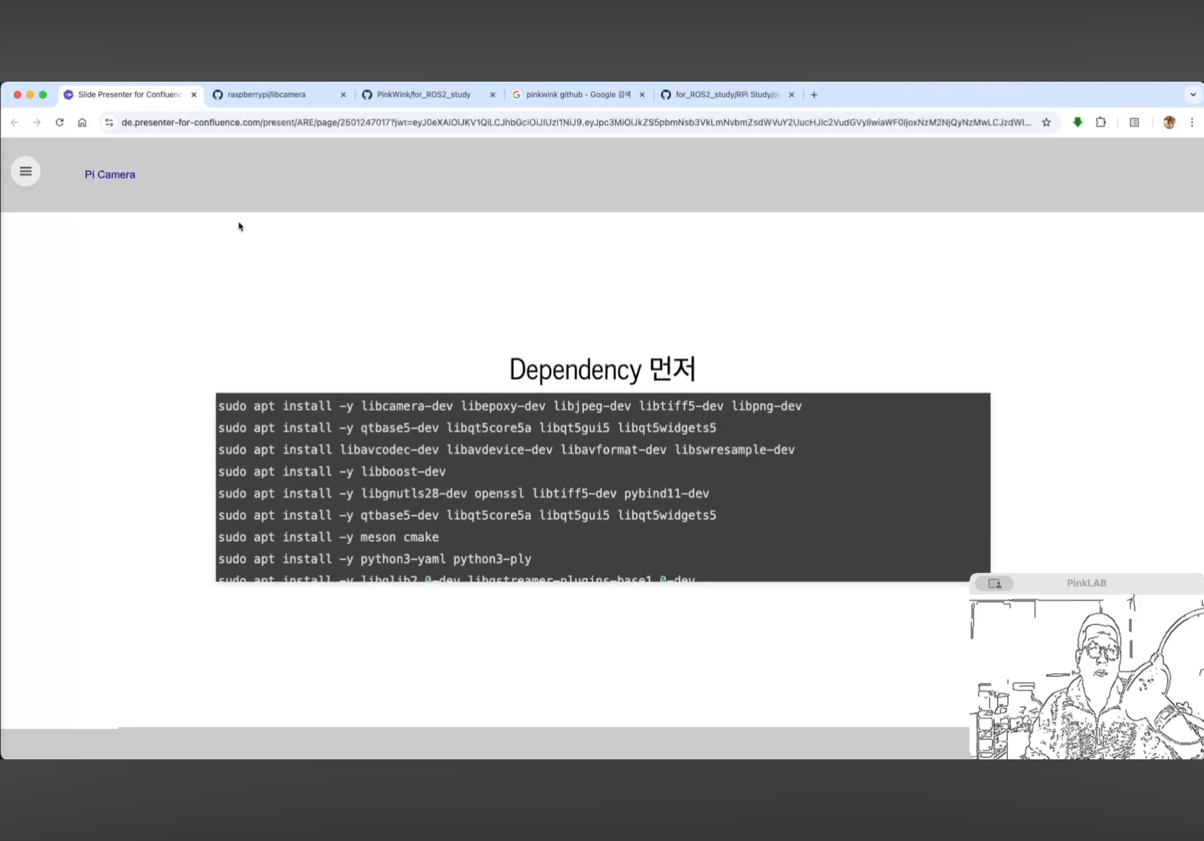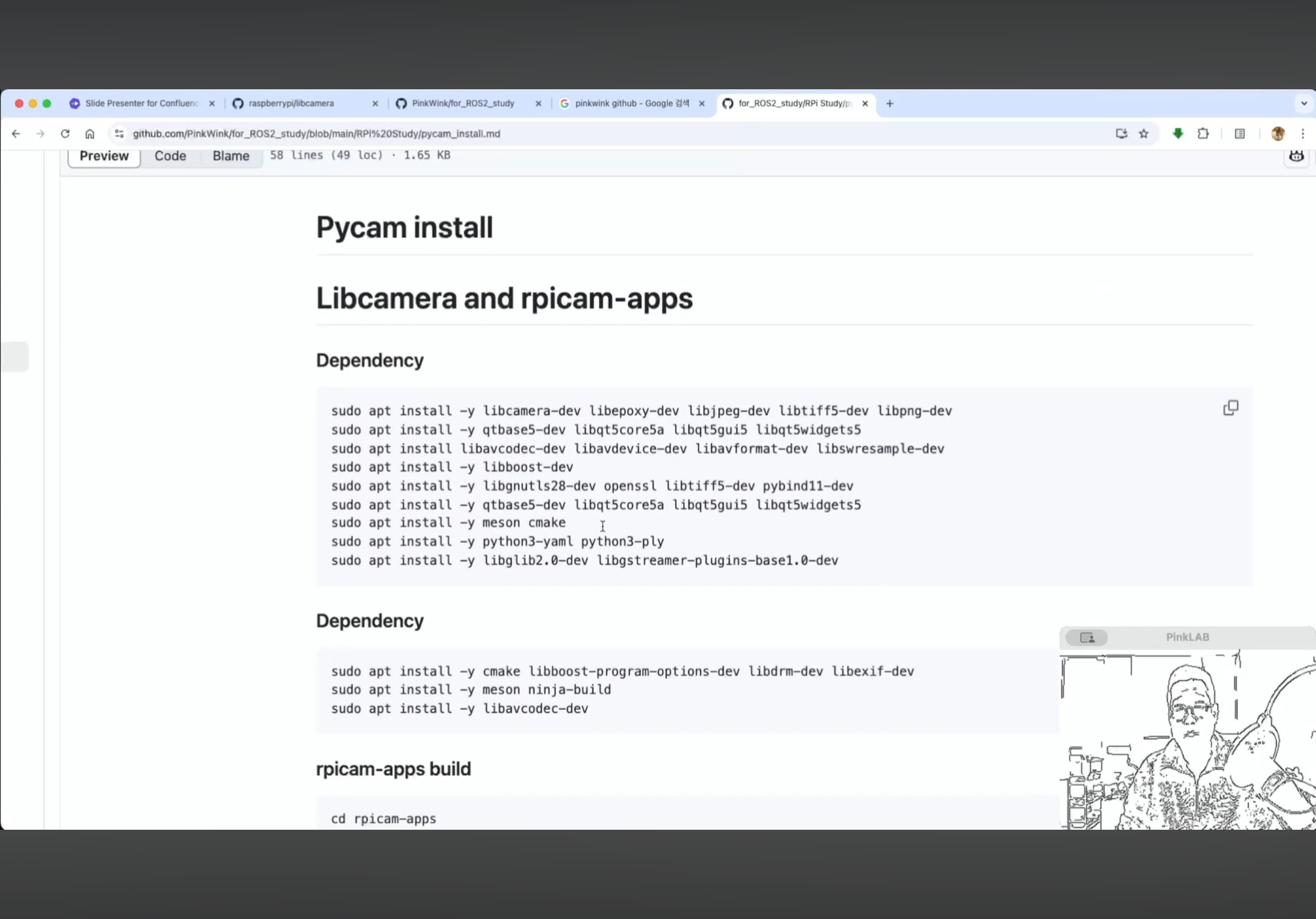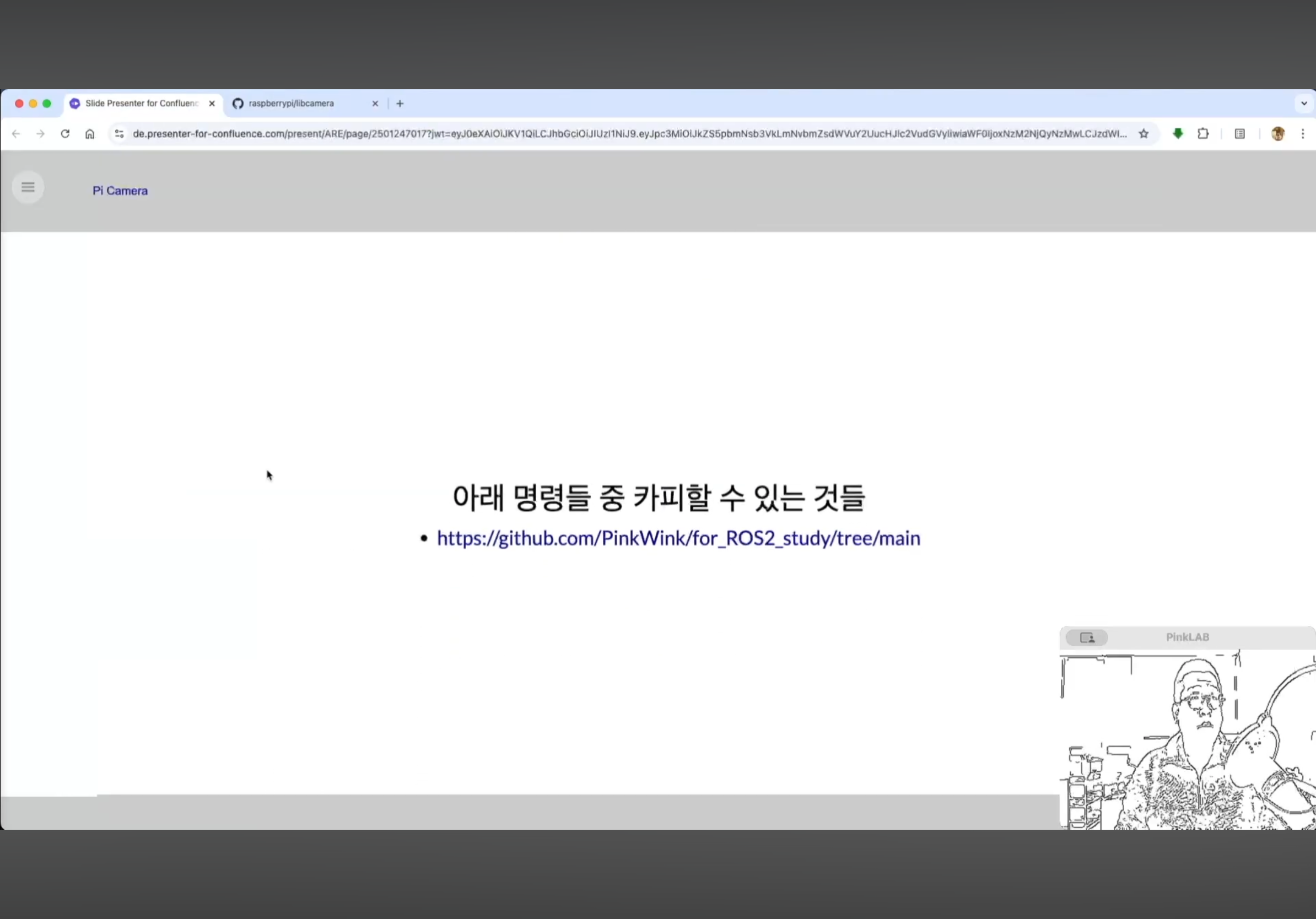 강사님께서 따로 만들어 두셨다는 강사님의 Repositories , for ROS2 study 에 있는 pycam_install.md 파일 거기에도 카피가 되어 있어요. 방금 말씀드린 것, 이건 파이캠이에요.