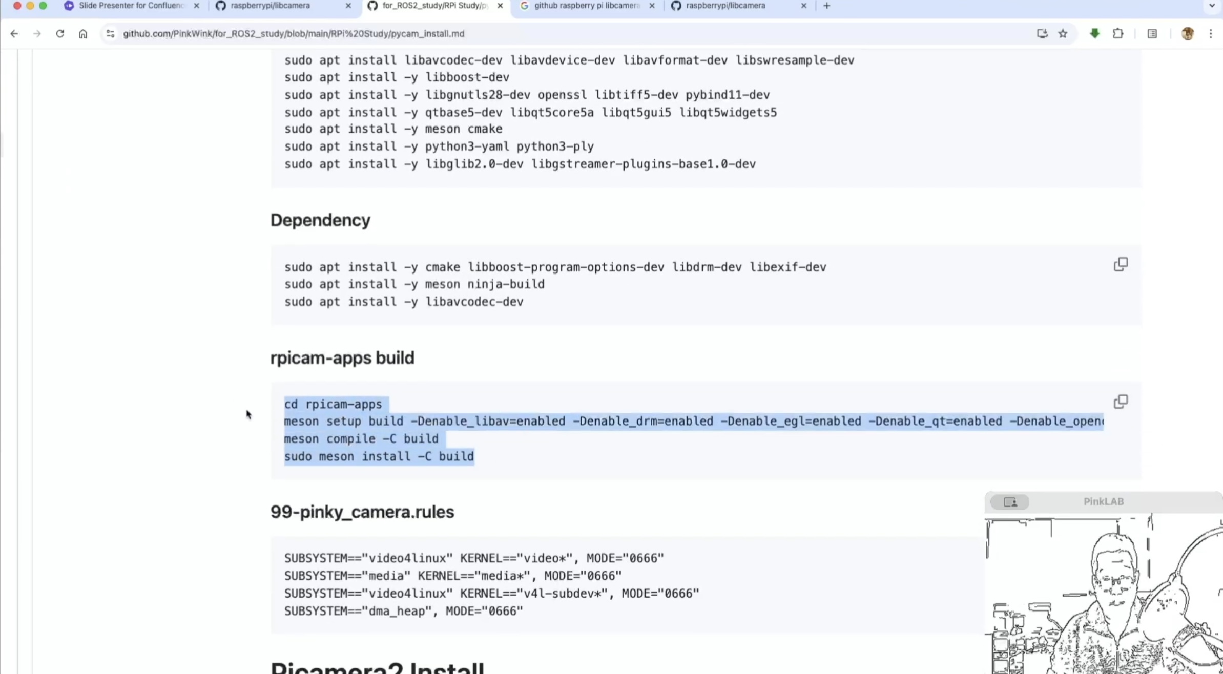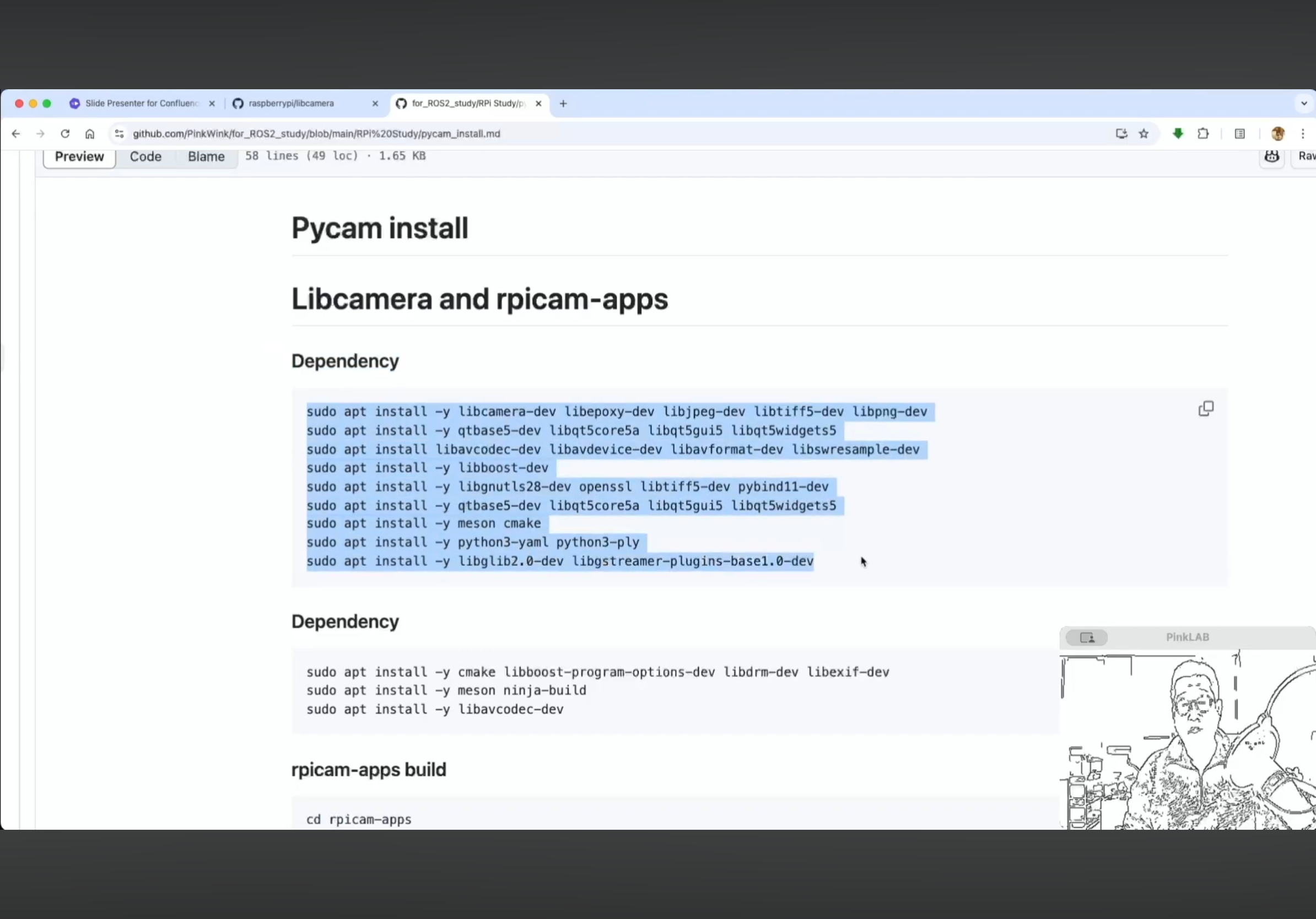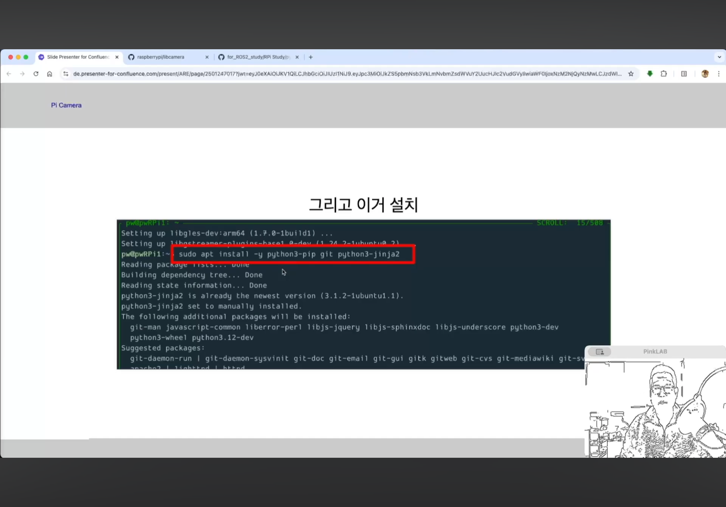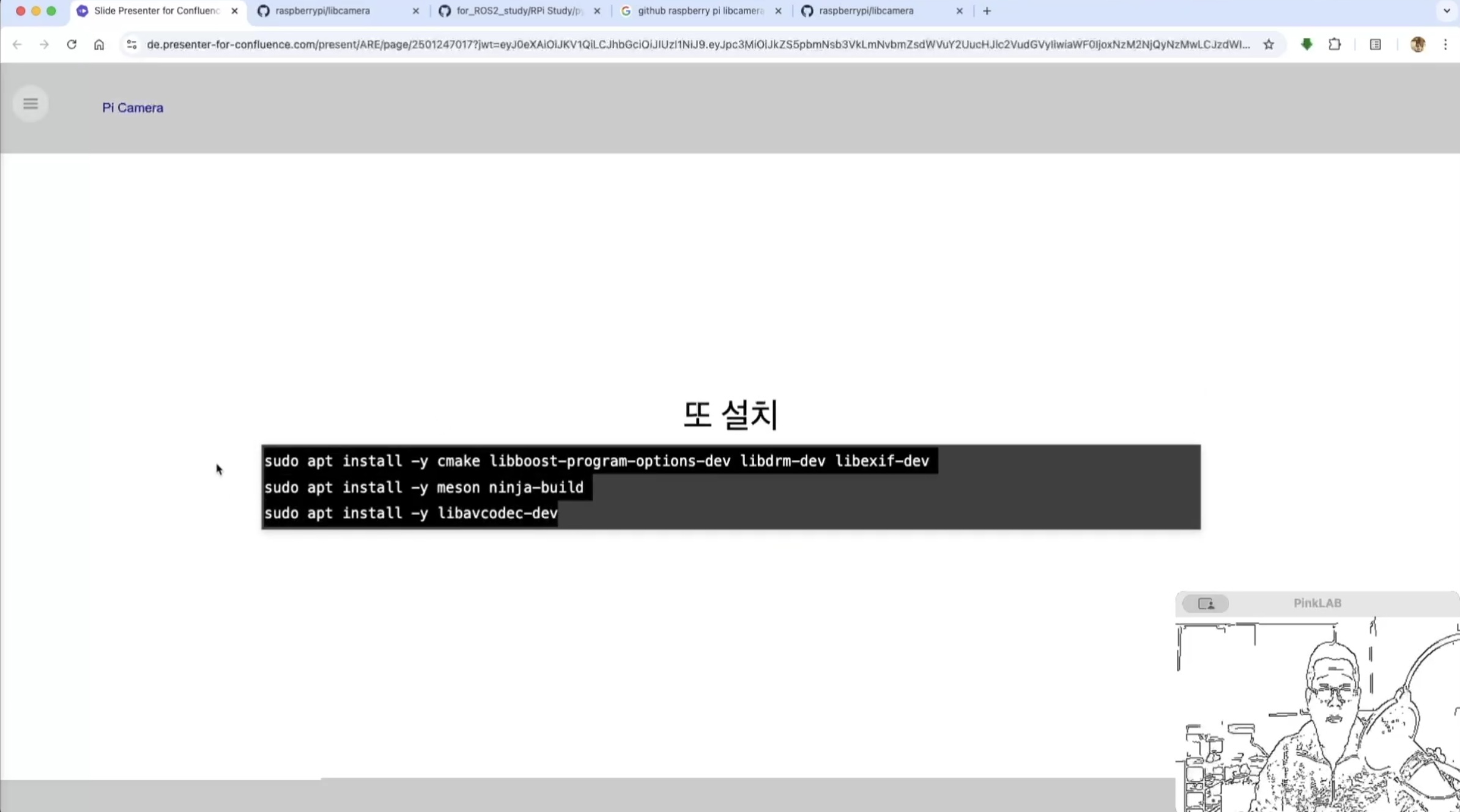 강사님께서 따로 만들어 두셨다는 강사님의 Repositories , for ROS2 study 에 있는 pycam_install.md 파일 거기에도 카피가 되어 있어요. 방금 말씀드린 것, 이건 파이캠이에요.