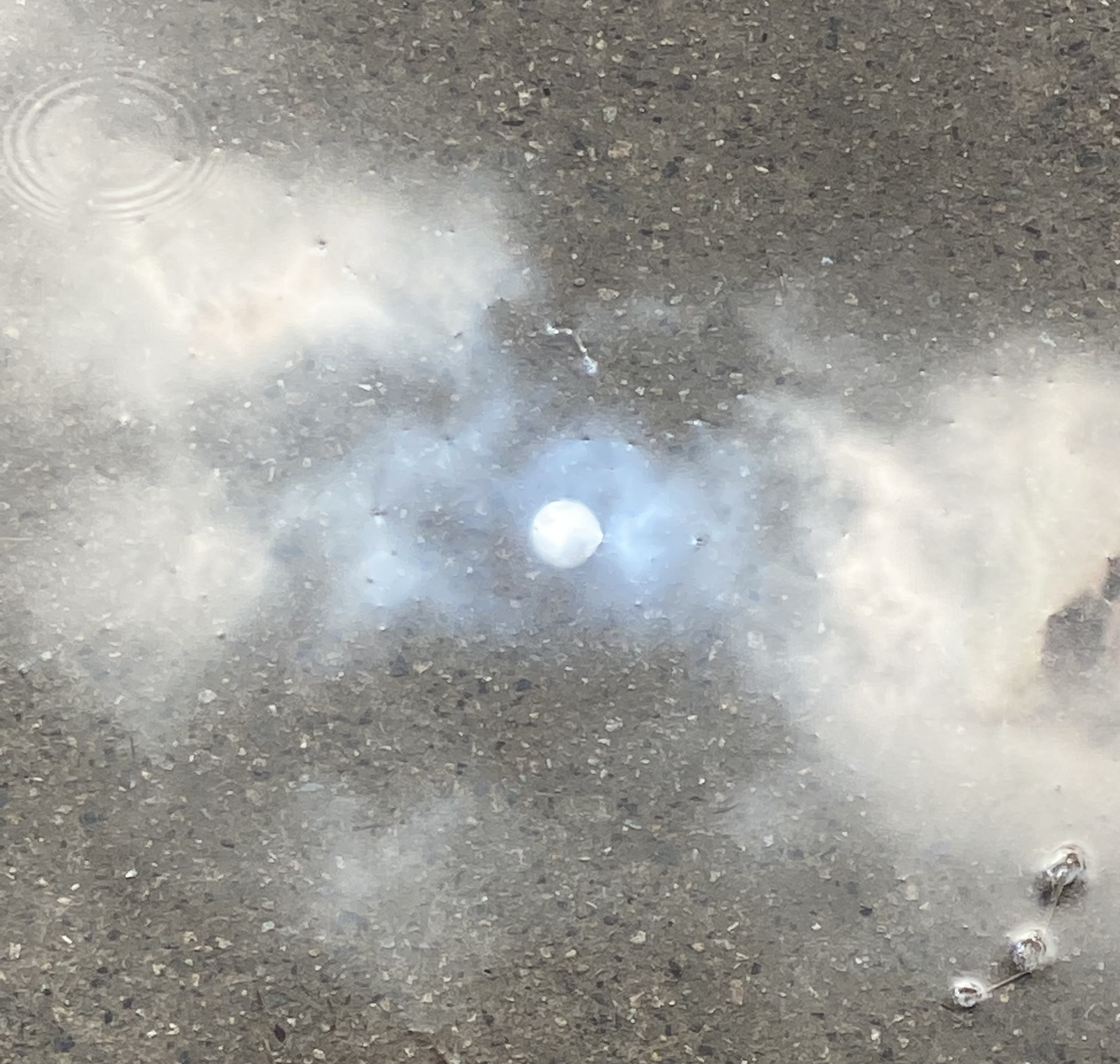웅덩이에저렇게 구름이랑 달이 떠 있기도 해요. 비오는 날만 볼 수 있는 광경!