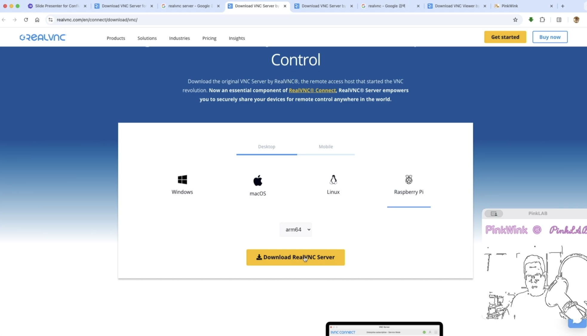 google에서 RealVNC server 하면 Download VNC Server by RealVNC 라고 떠요.