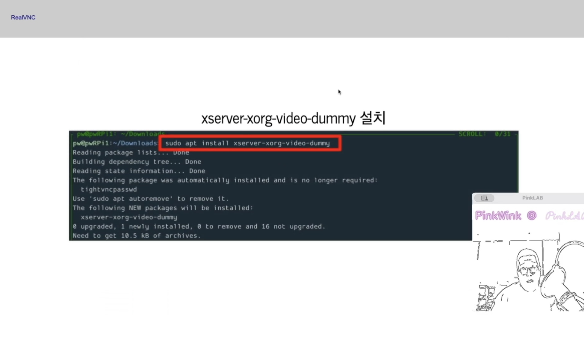 이것도 설치를 하셔야해요. sudo apt install xserver-xorg-video-dummy