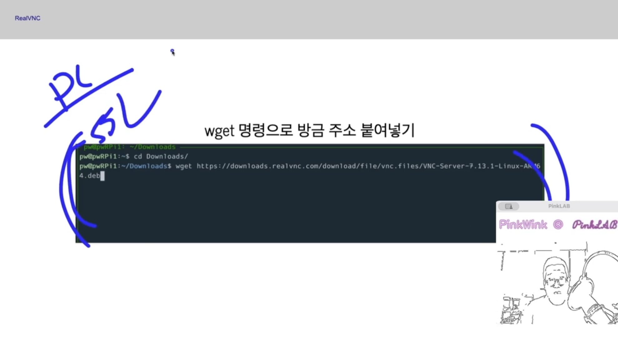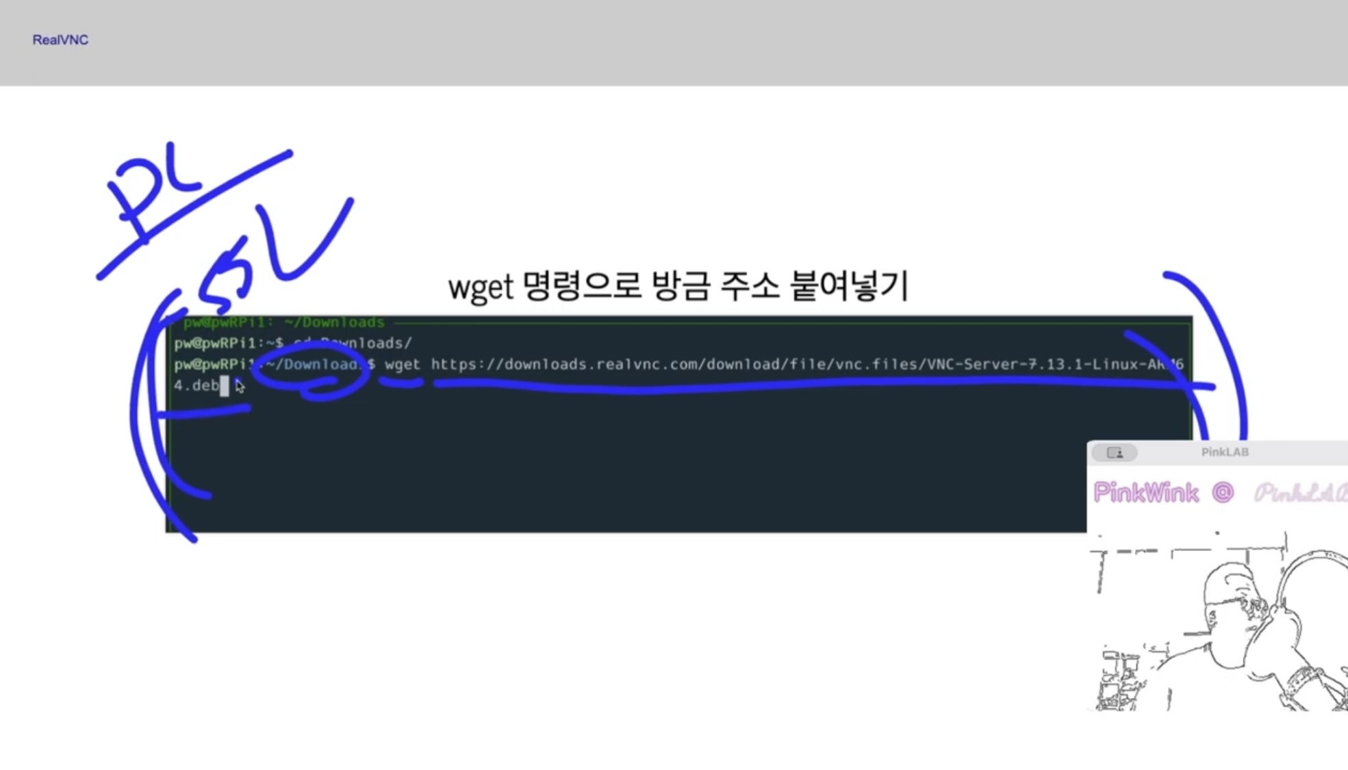 그러고 cd Downloads 들어가서 wget 명령어로, ctrl + v ( mac, 라즈베리 바로 접속 하셨거나 , 다른 os : ctrl + shift + v ) 하셔서 다운로드를 하시면 된답니다.