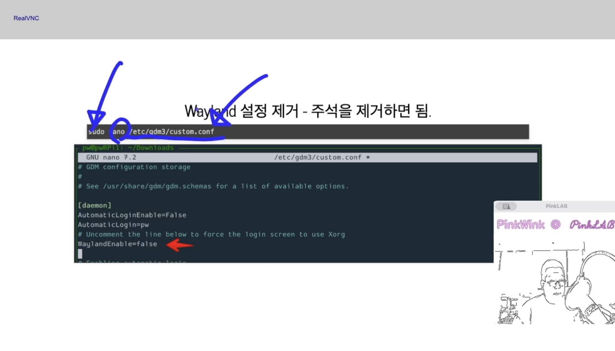 WaylandEnable=false 여기 샵을 제거하시면 되구요,